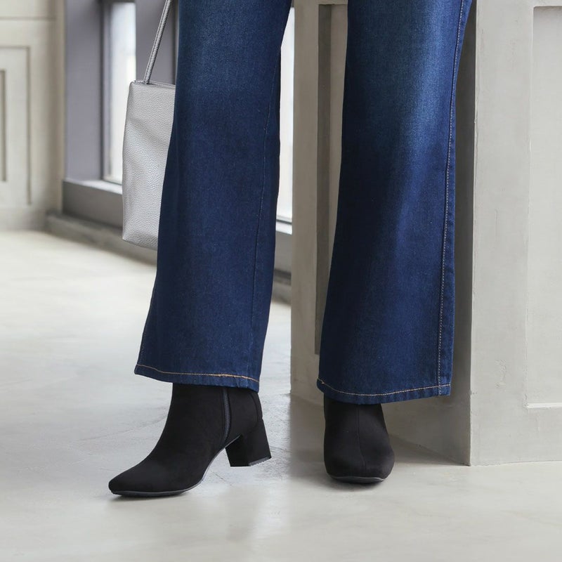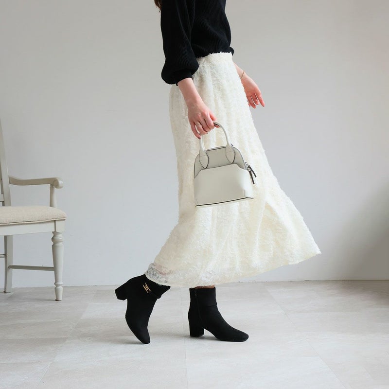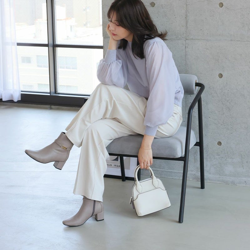 ・丸みのあるスクエアトゥ×ブロックヒールで甘くなりすぎないスッキリとしたシルエット