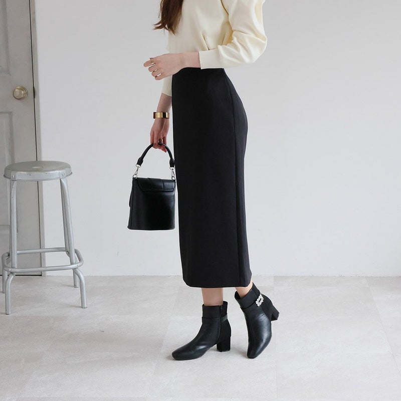 ・丸みのあるスクエアトゥ×ブロックヒールで甘くなりすぎないスッキリとしたシルエット
