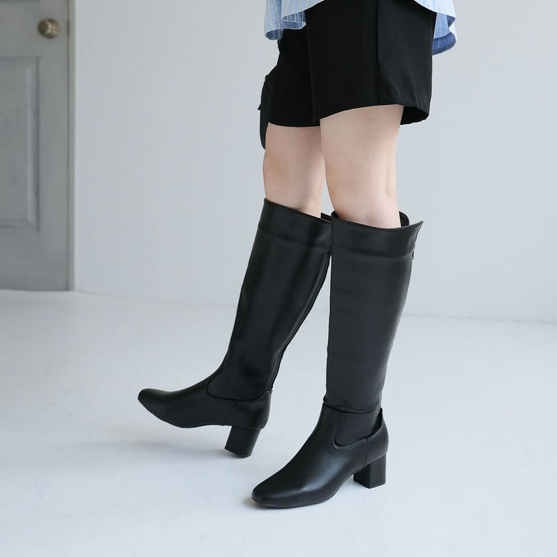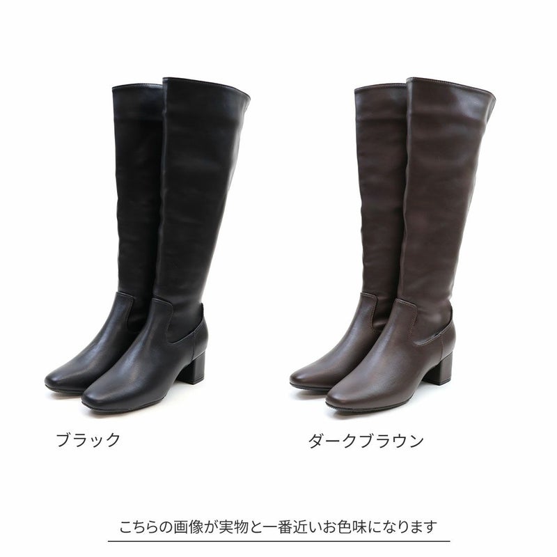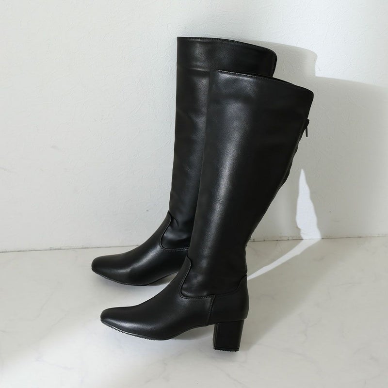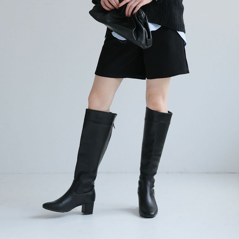 ・シンプルで美しいフォルムが魅力!スッとした縦ラインと程よいスクエアトゥで大人な印象になるキレイめロングブーツ。