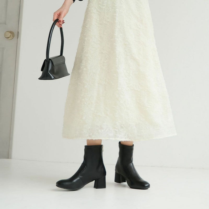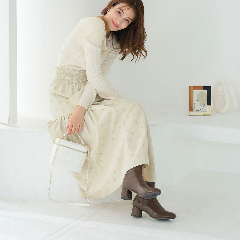 ・スクエアトゥ×チャンキーヒールで履くだけで大人のこなれ感を演出。