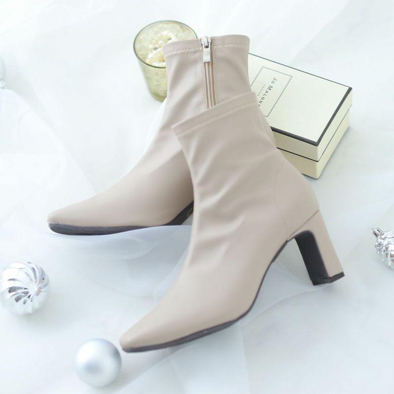 ・人気のプレートヒールストレッチブーツにグレーとグレージュが仲間入り!