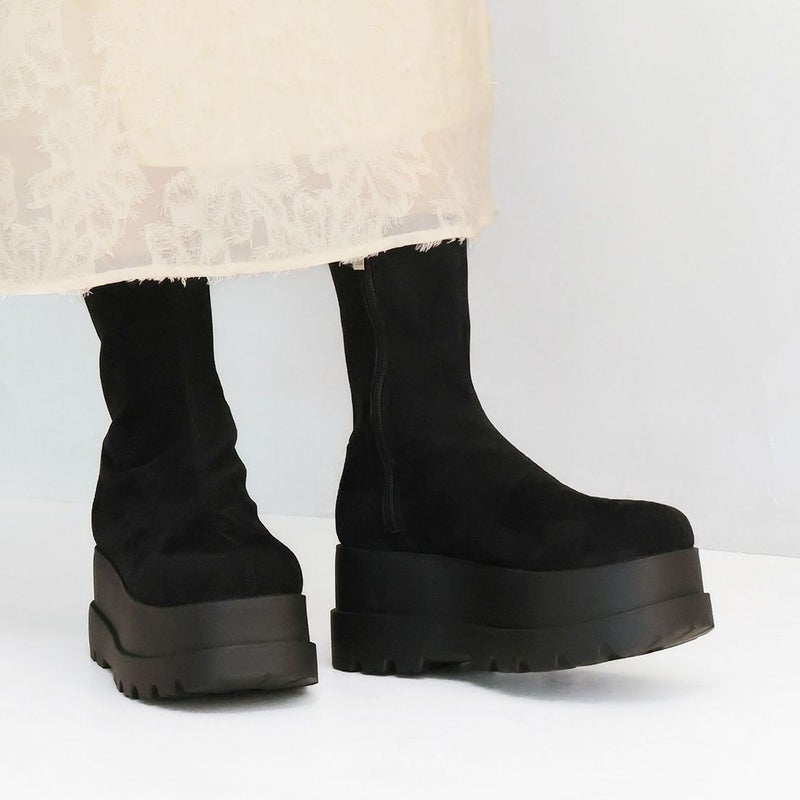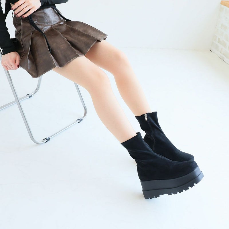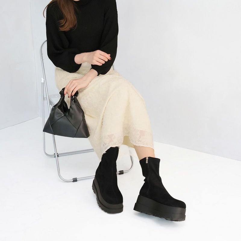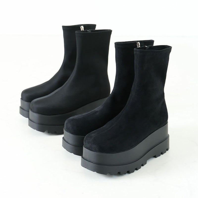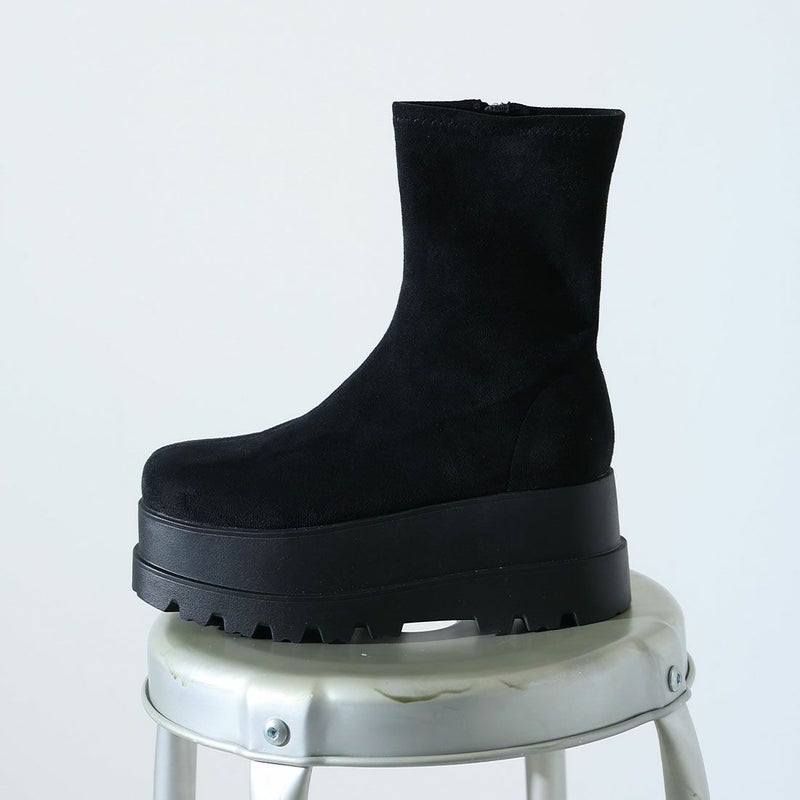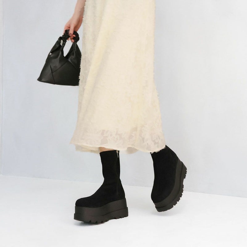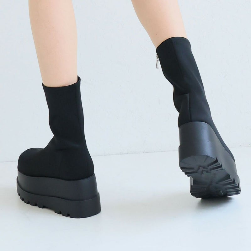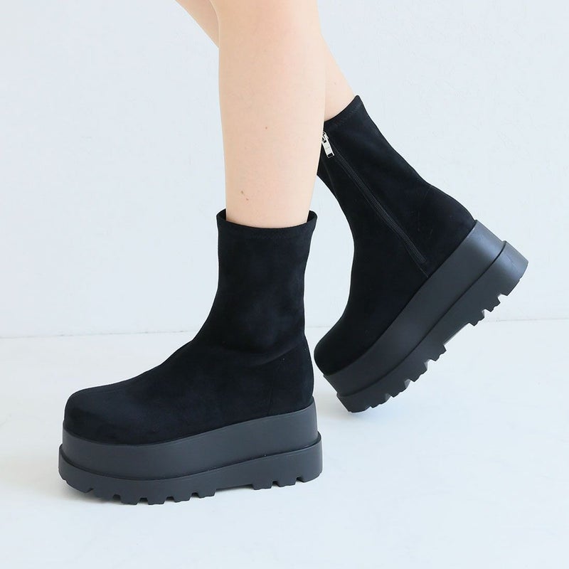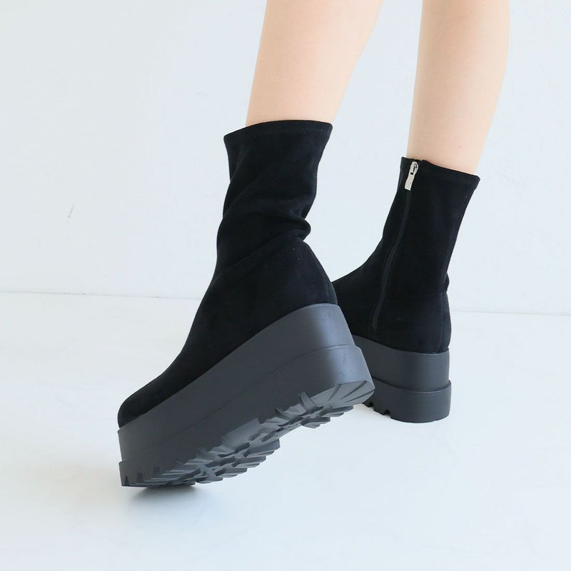 ・脚長に見える厚底ウェッジでスタイルアップが叶うストレッチブーツ!