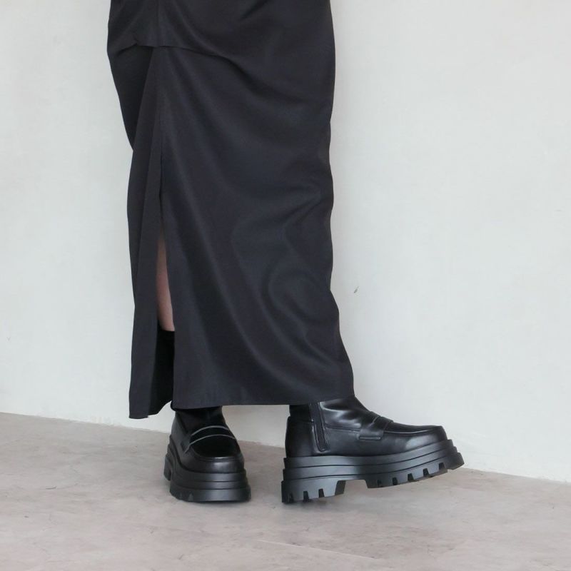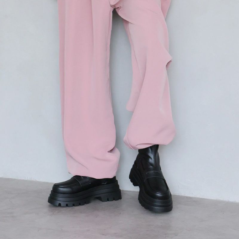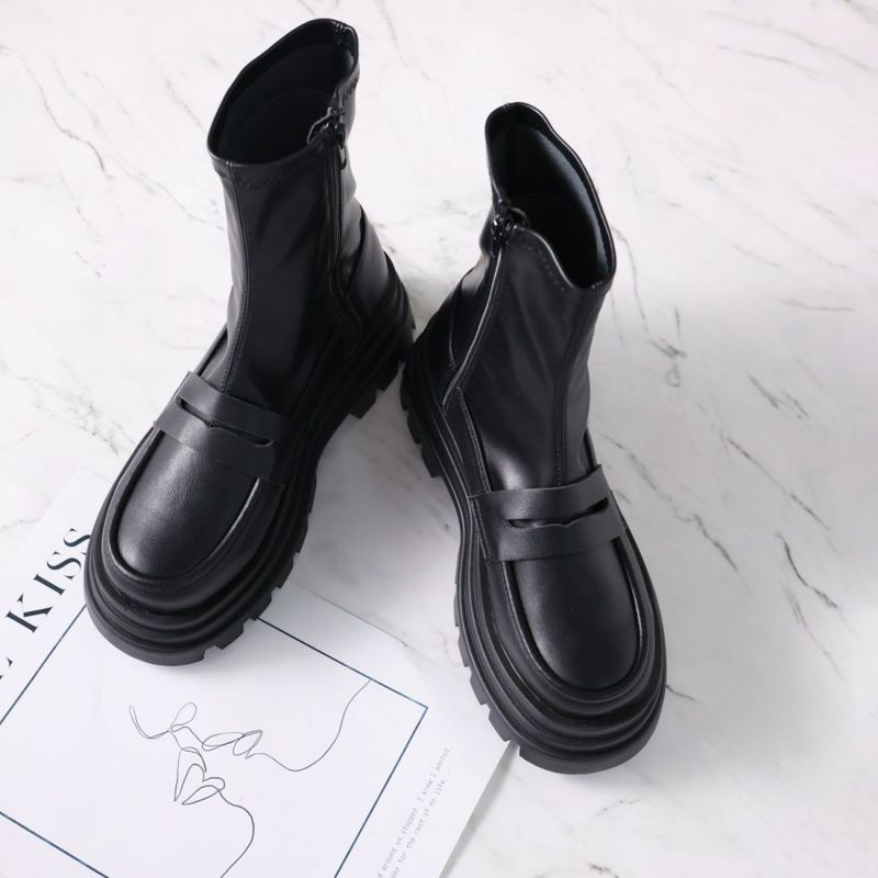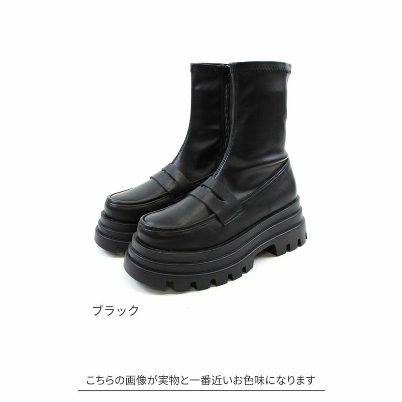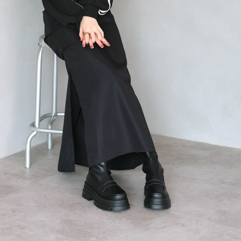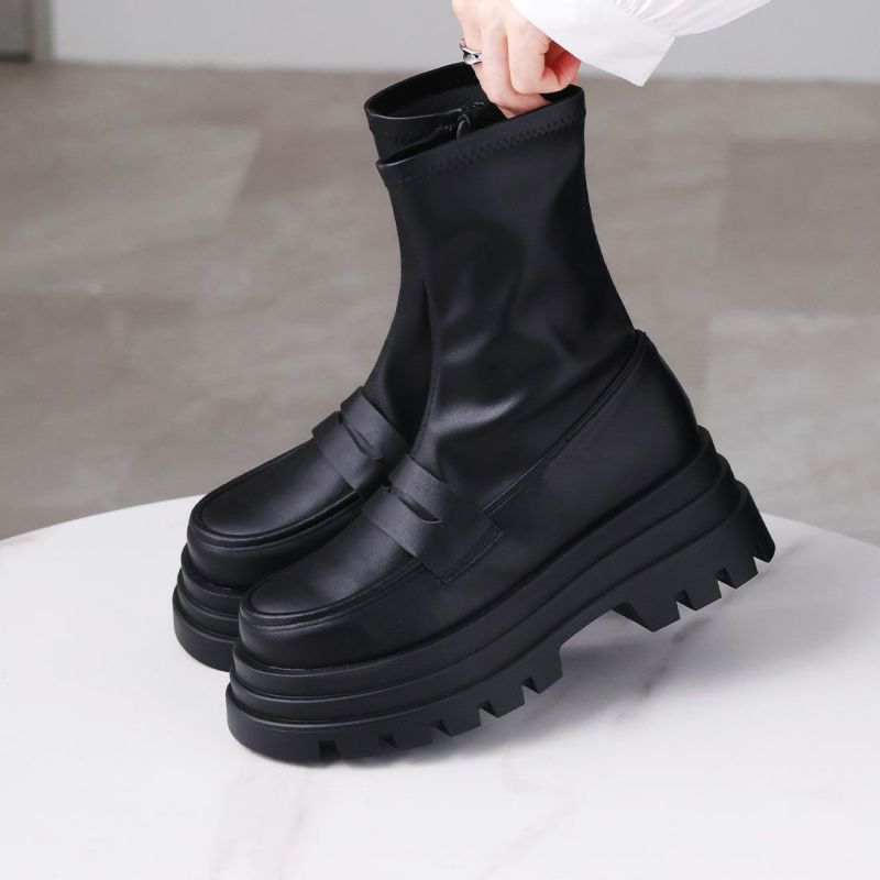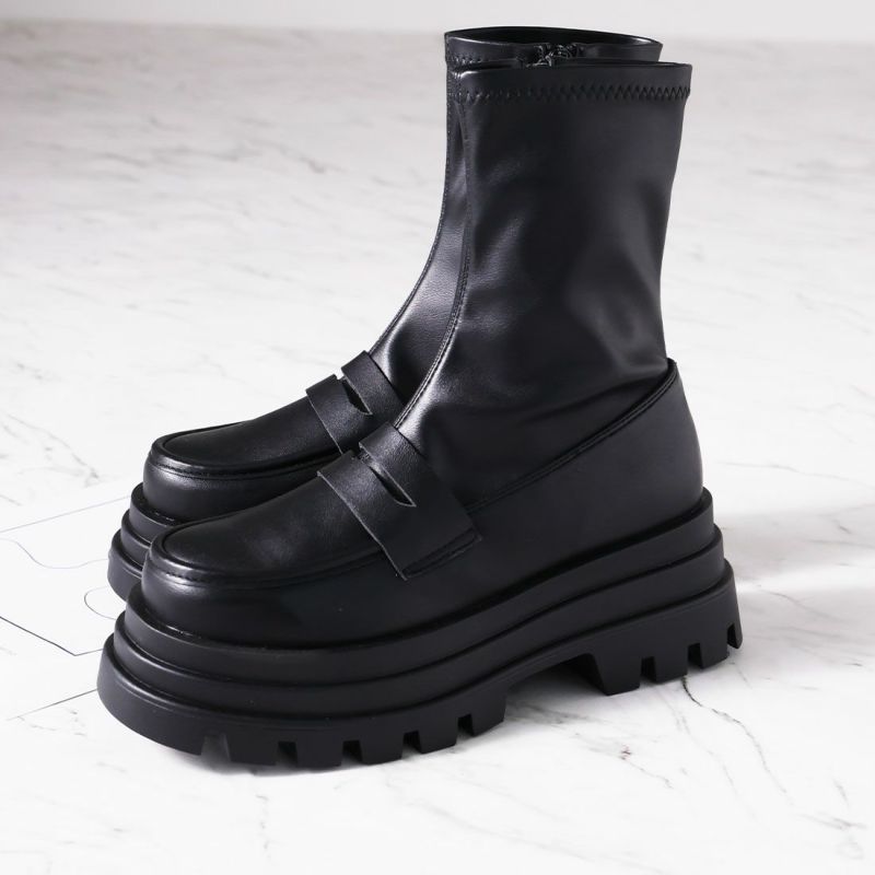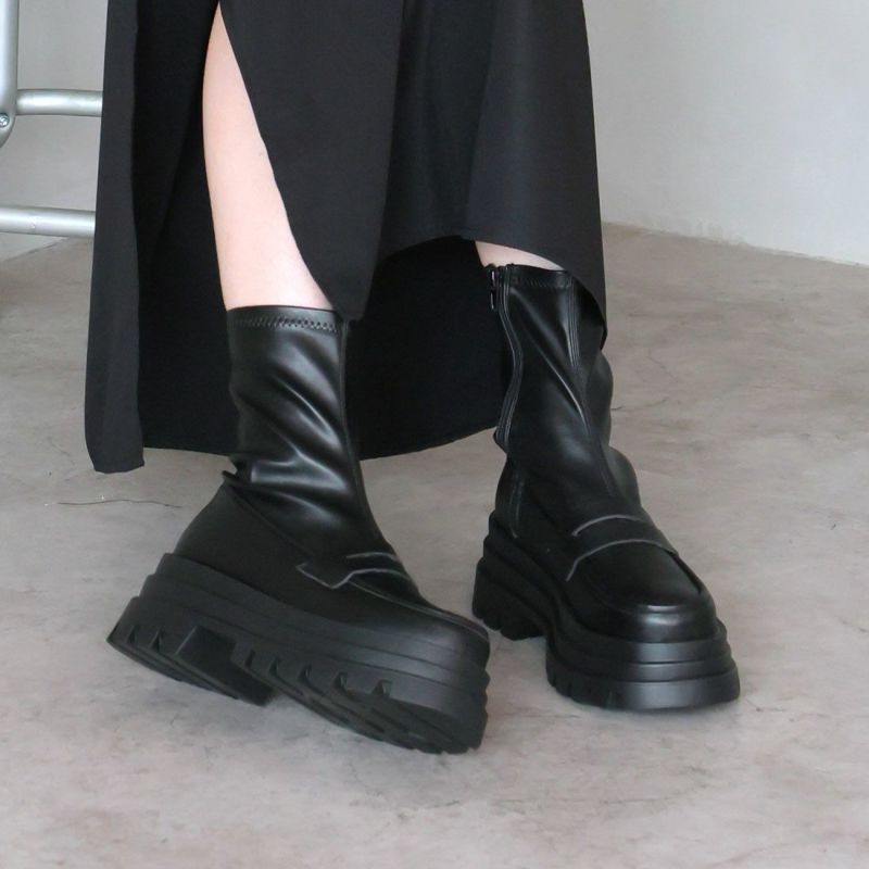 ・コインローファーデザインのゴツめ厚底ストレッチブーツ