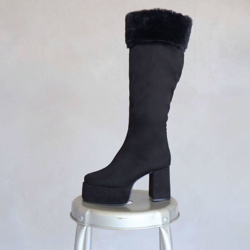 ・ポリュームのあるふわもこファーが大人カワイイ厚底ロングブーツ!