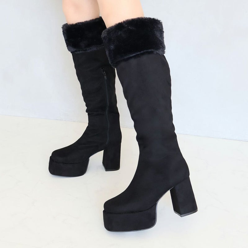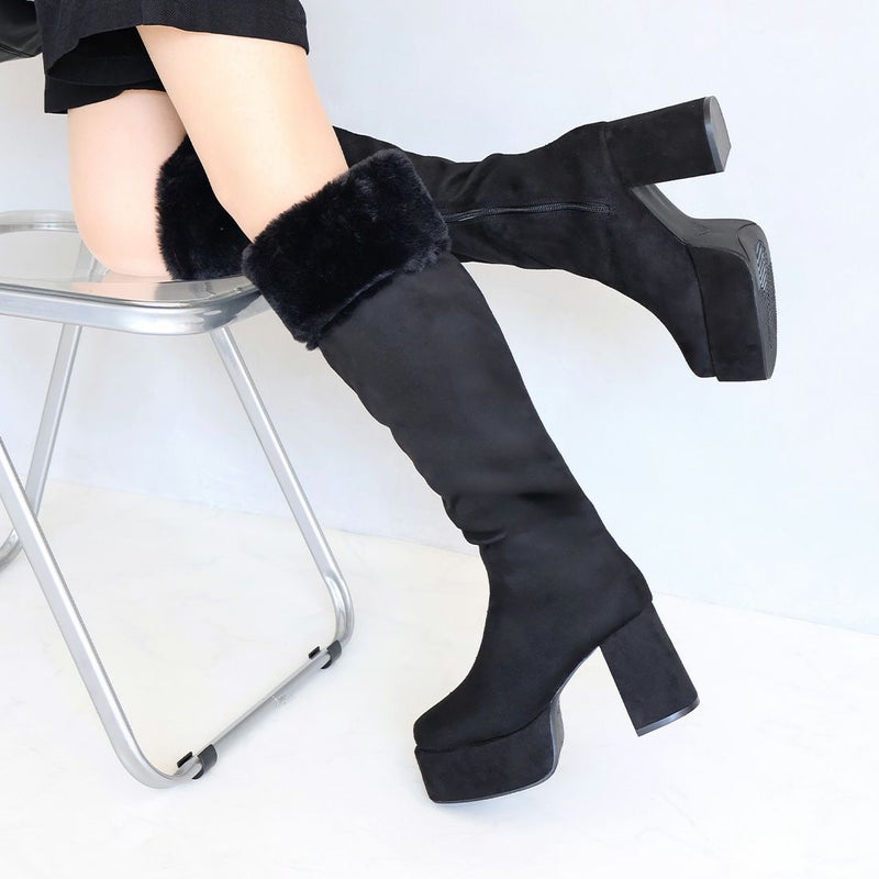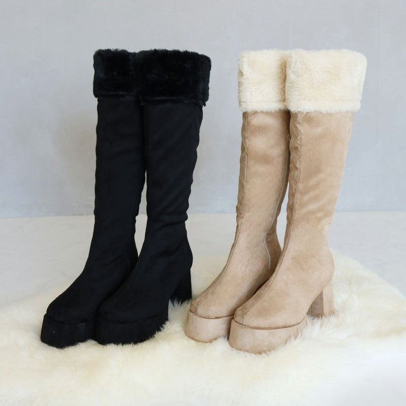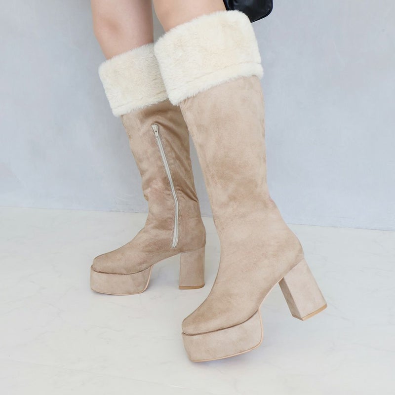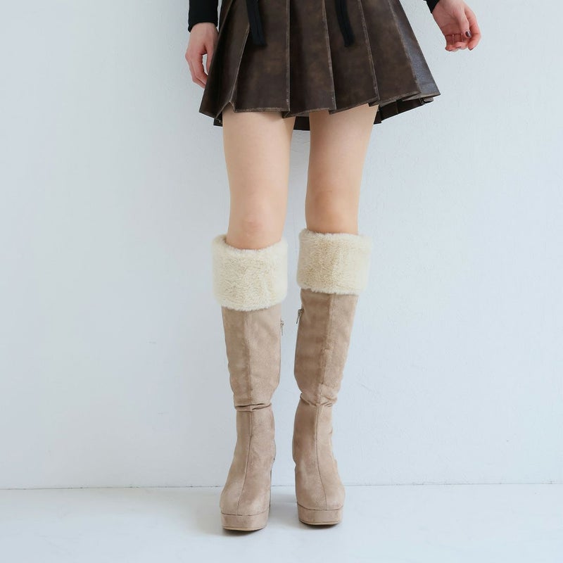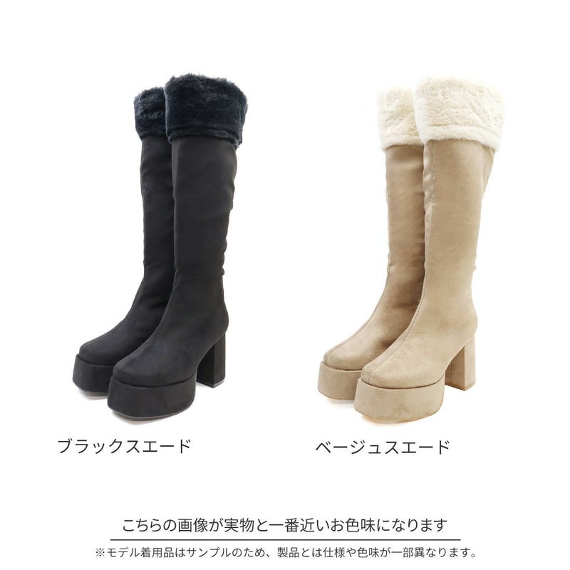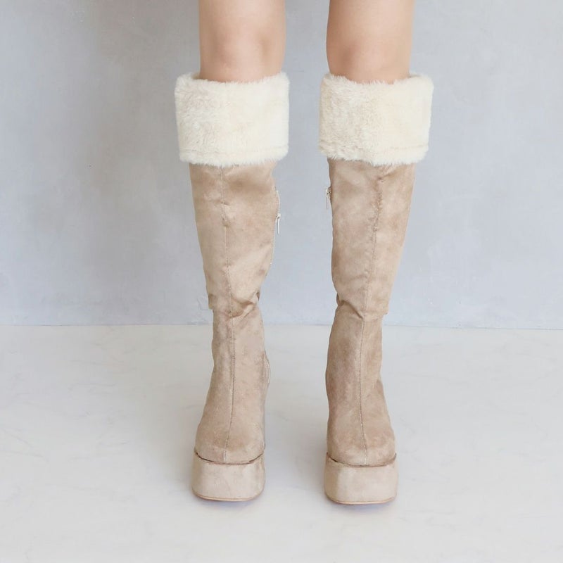 ・ポリュームのあるふわもこファーが大人カワイイ厚底ロングブーツ!