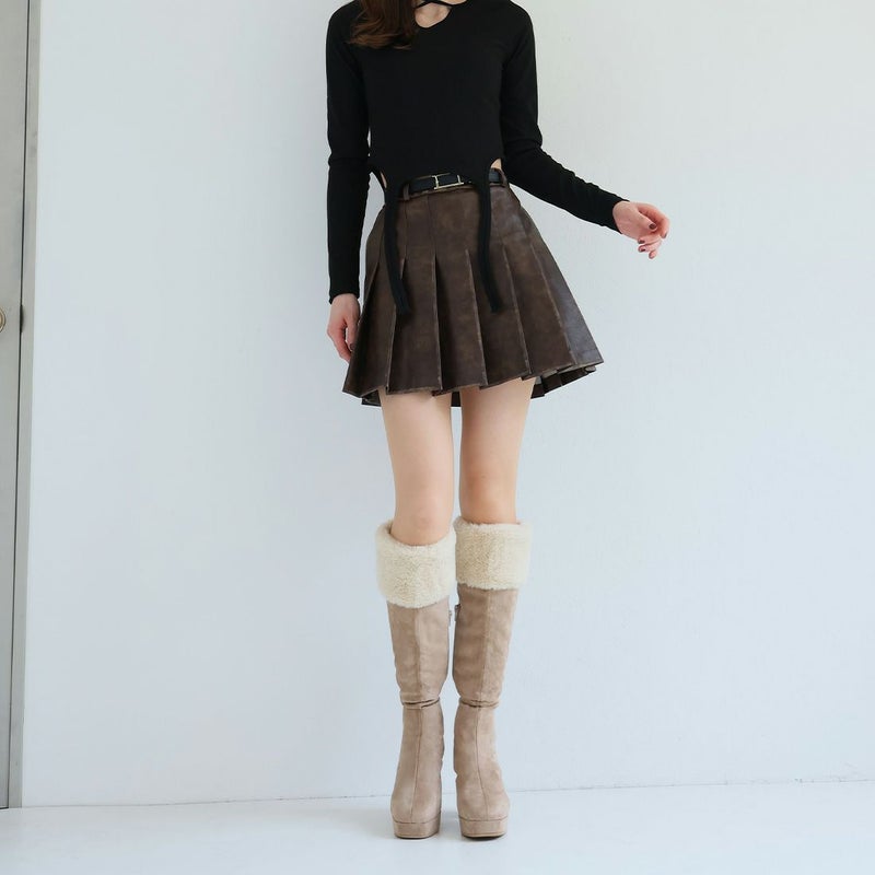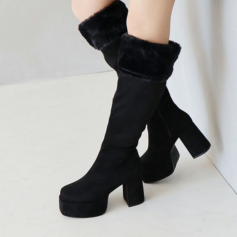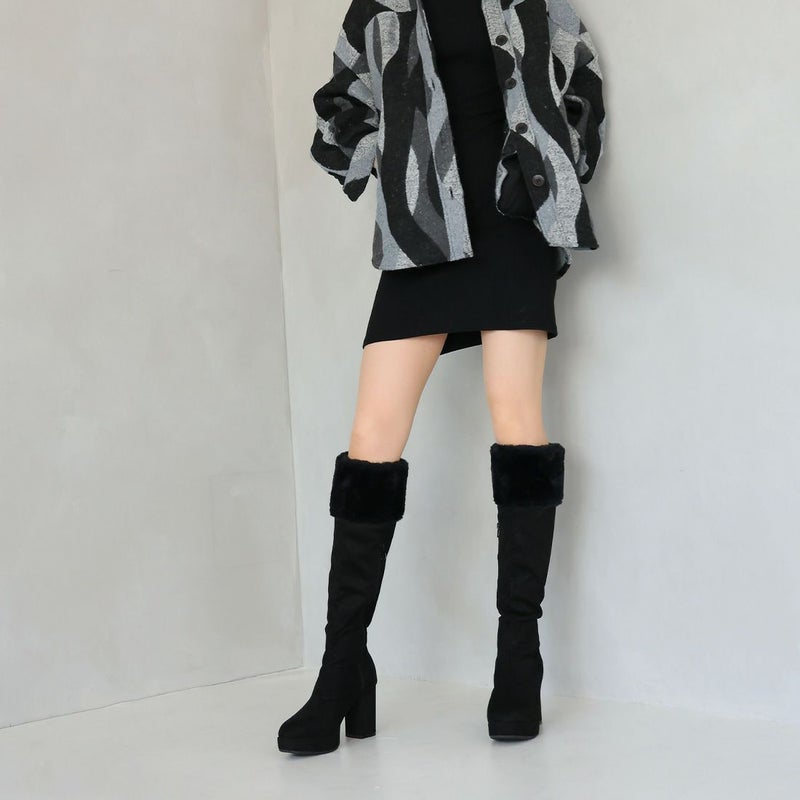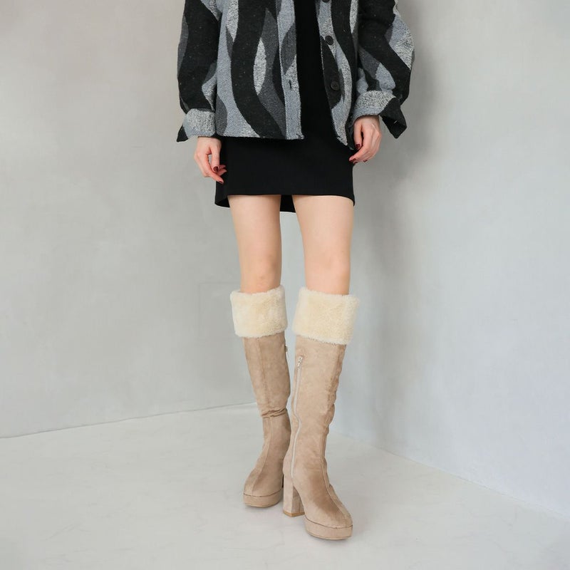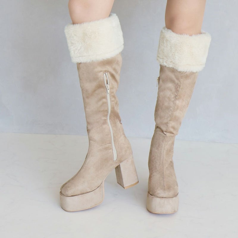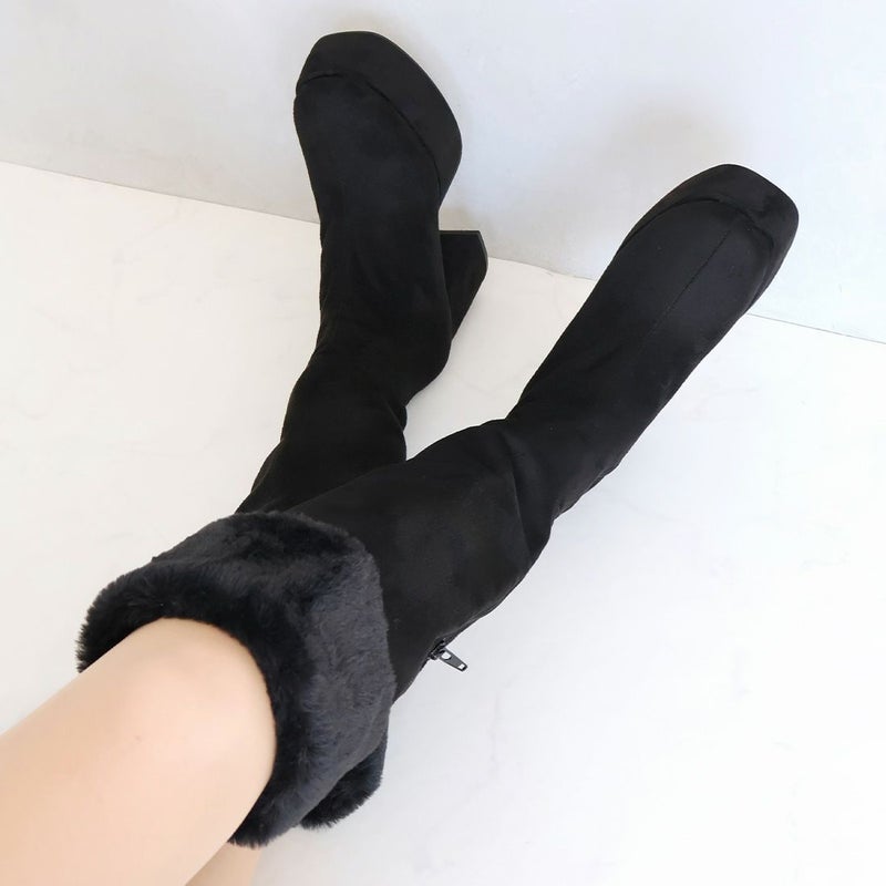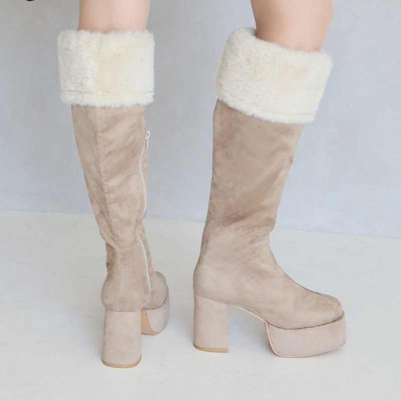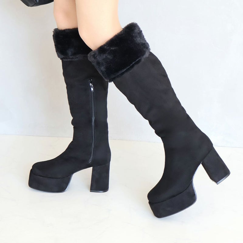 ・ポリュームのあるふわもこファーが大人カワイイ厚底ロングブーツ!