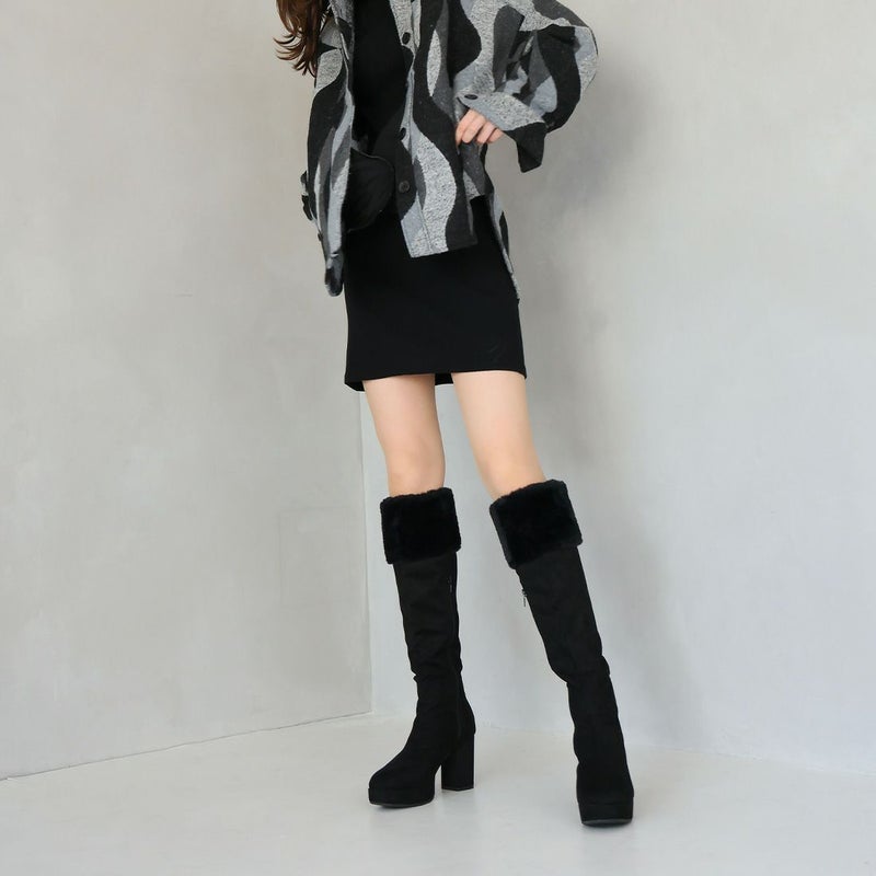 ・脚長ファーブーツで無敵モテなのに、太ヒールで安定感があり、プラットフォームでヒールとの高低差が気になりにくく歩きやすいのもうれしいポイント。
