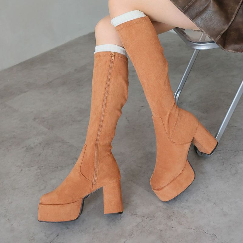 人気の厚底ロングブーツに今期らしいキャメルスエードが仲間入り!