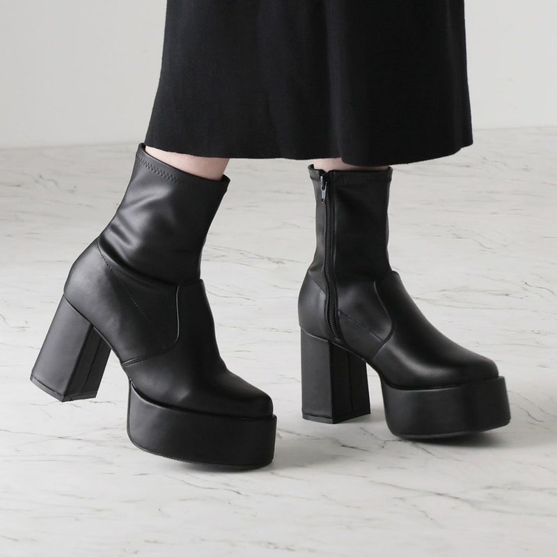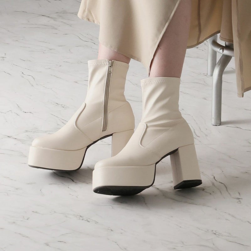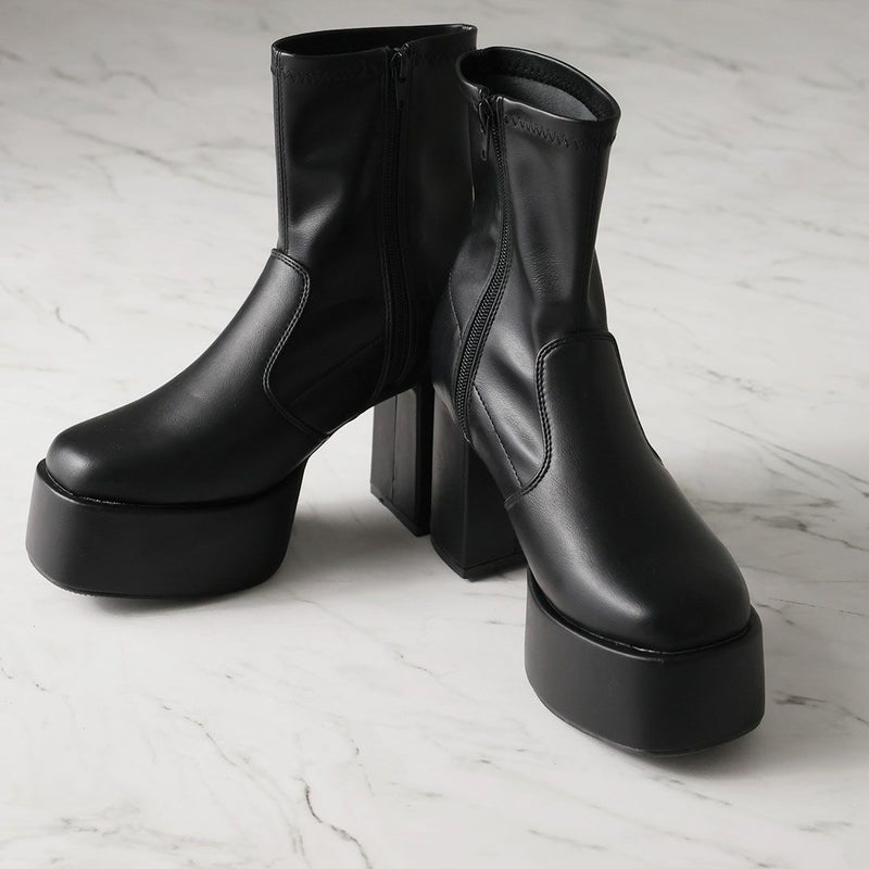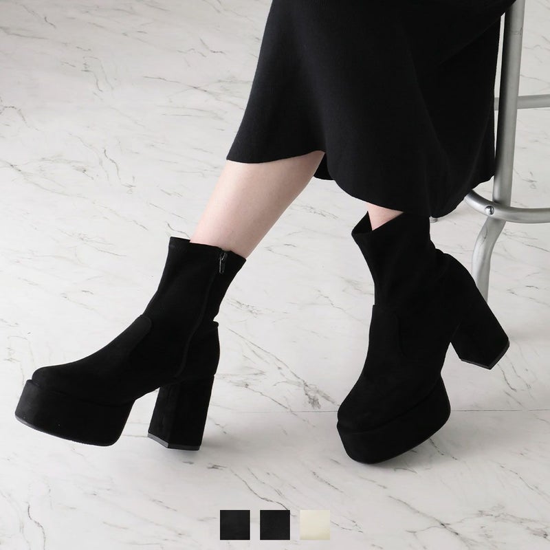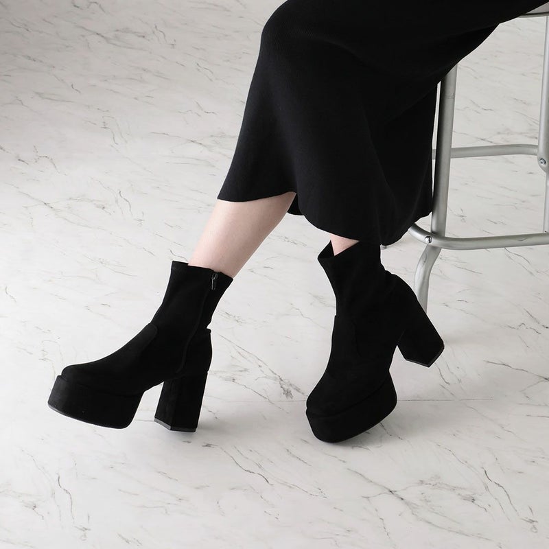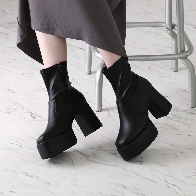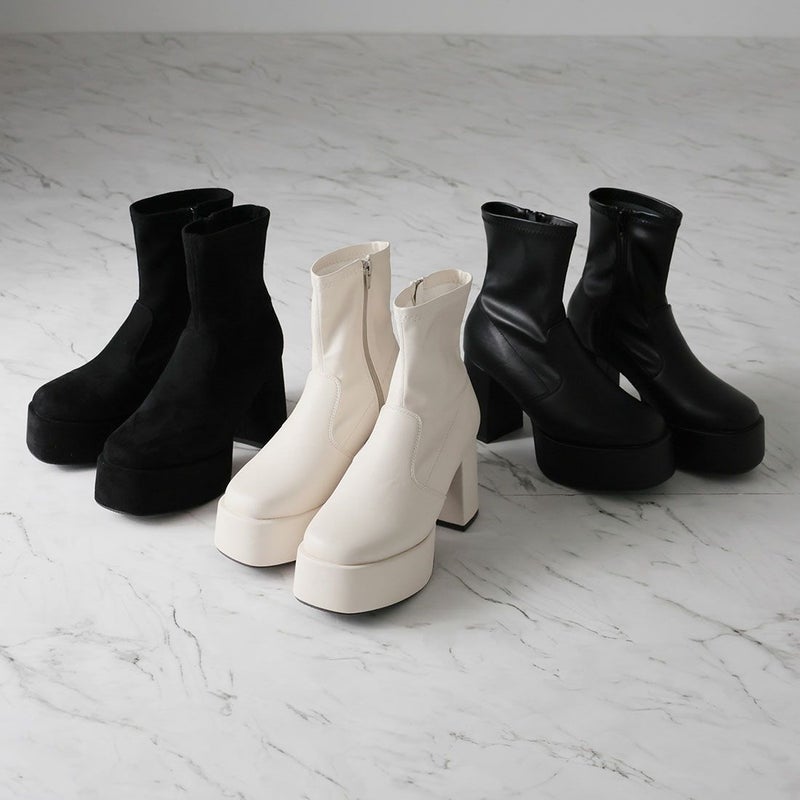 ・厚底プラットフォームデザインで足元も盛れるショートブーツ!