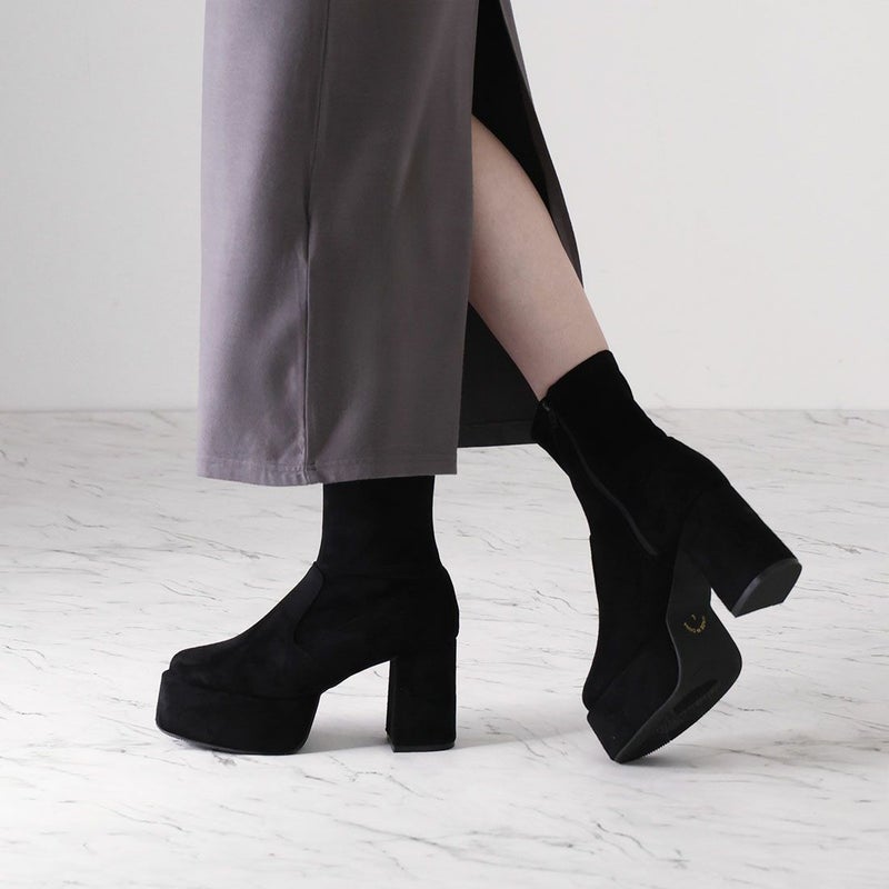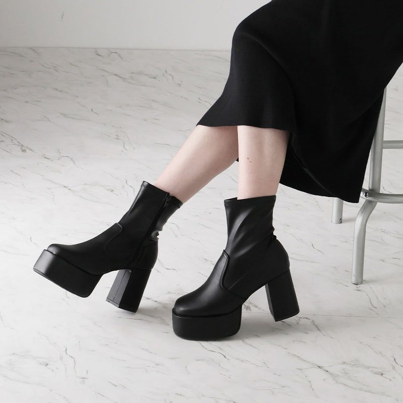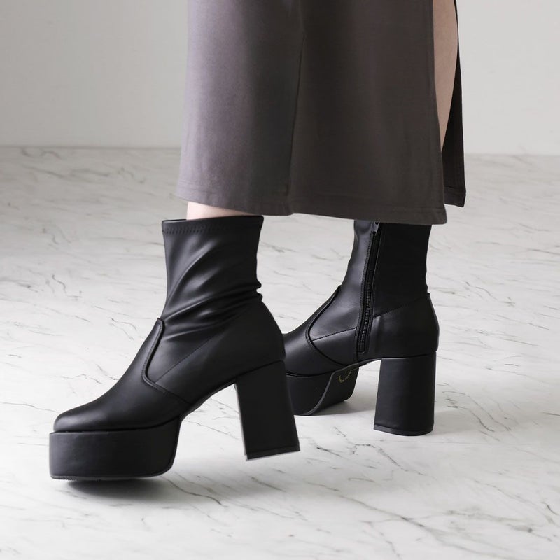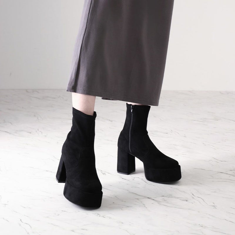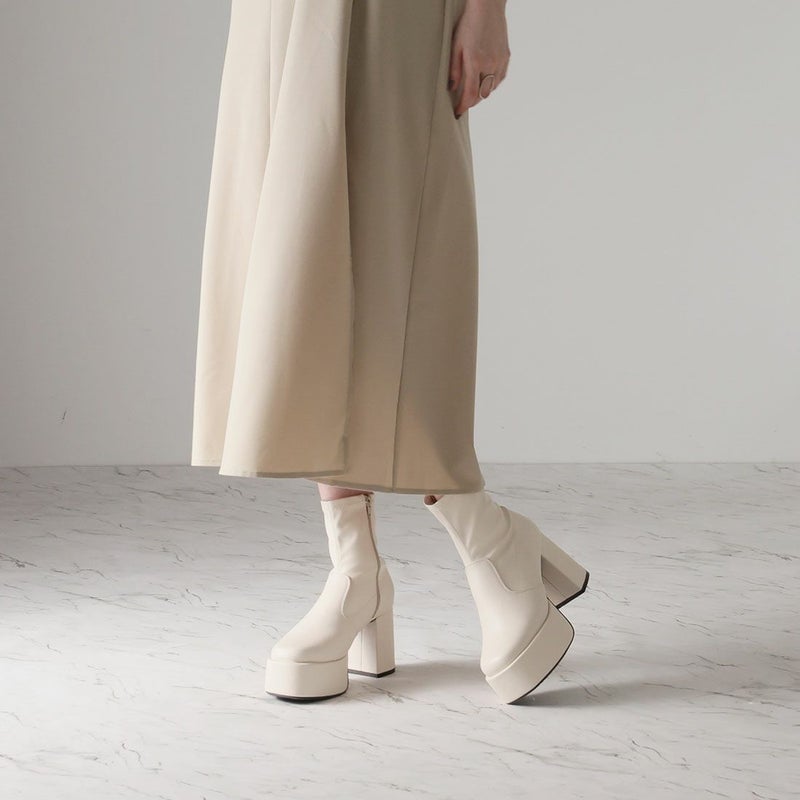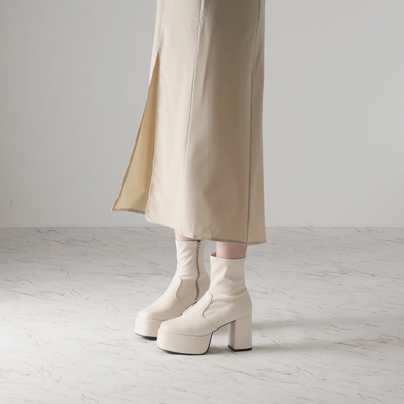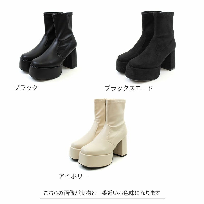 ・厚底プラットフォームデザインで足元も盛れるショートブーツ!