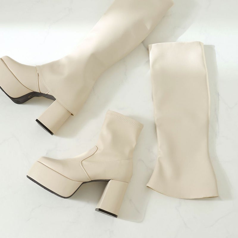 ・厚底プラットフォームデザインで足元も盛れるショートブーツ!