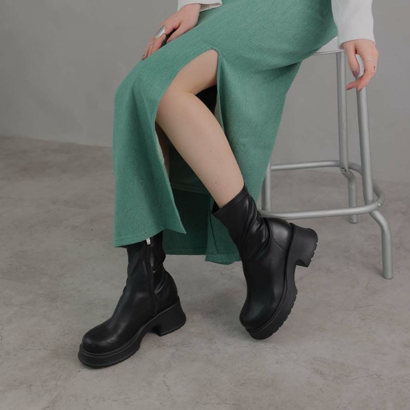 ・コロンとした丸みのあるトゥで個性が際立つ厚底ストレッチブーツ!