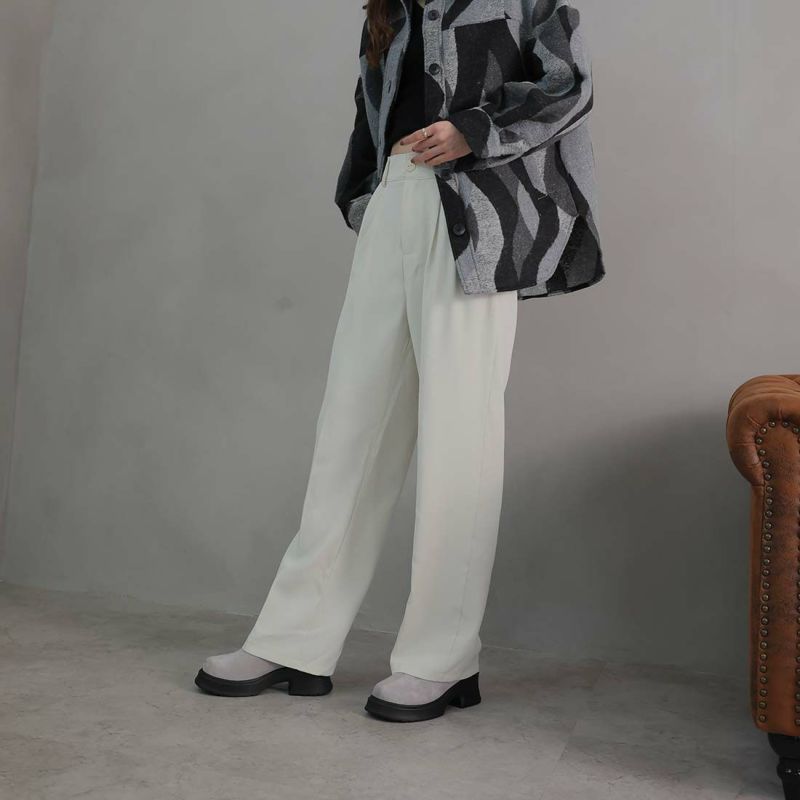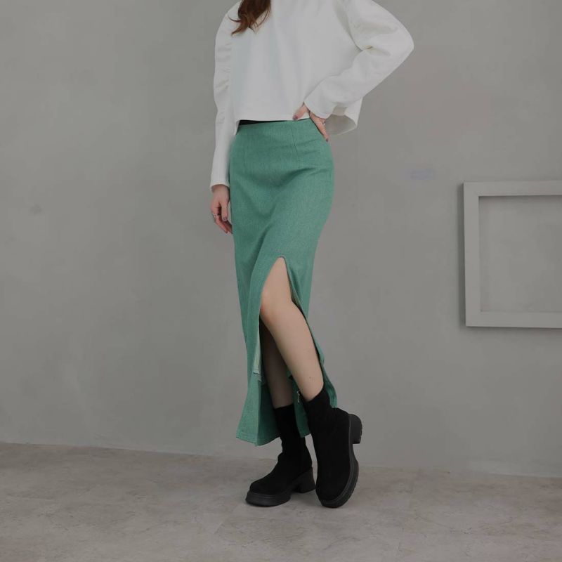 ・メンズライクなフォルムと絶妙な丈感でスカートにもパンツにもバランス良く合わせやすい。