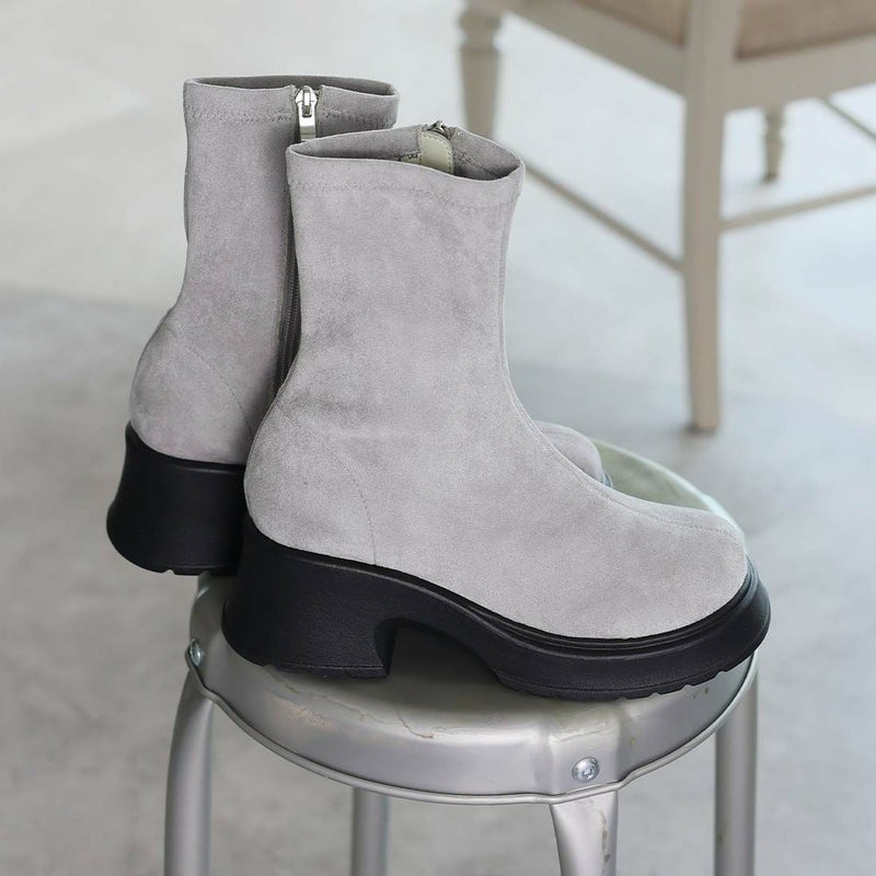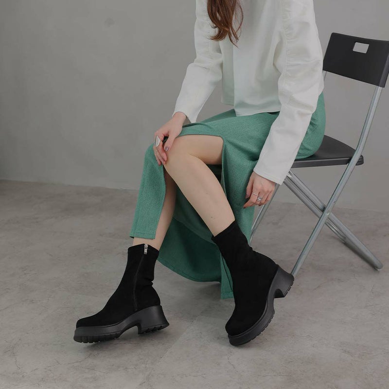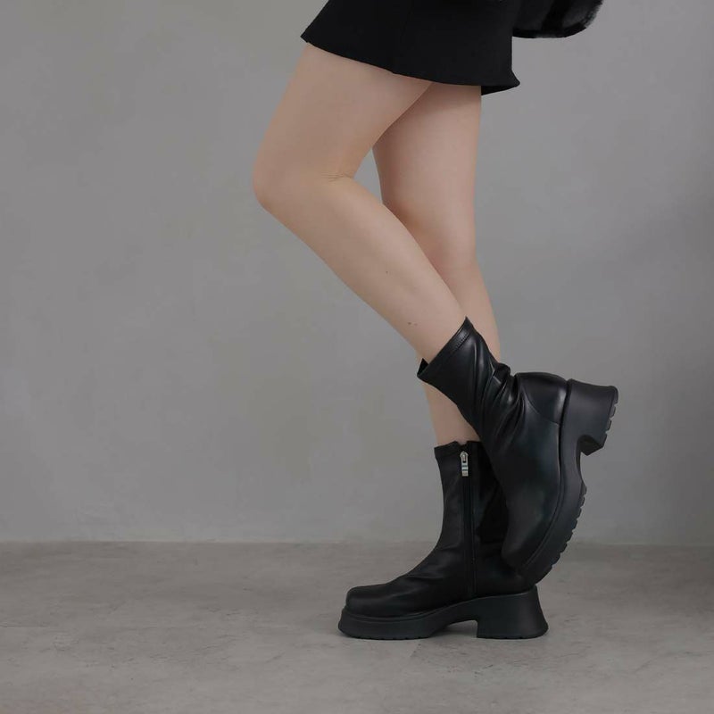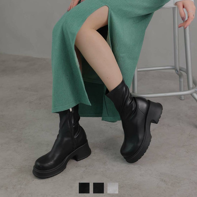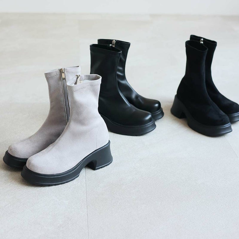 ・コロンとした丸みのあるトゥで個性が際立つ厚底ストレッチブーツ!
