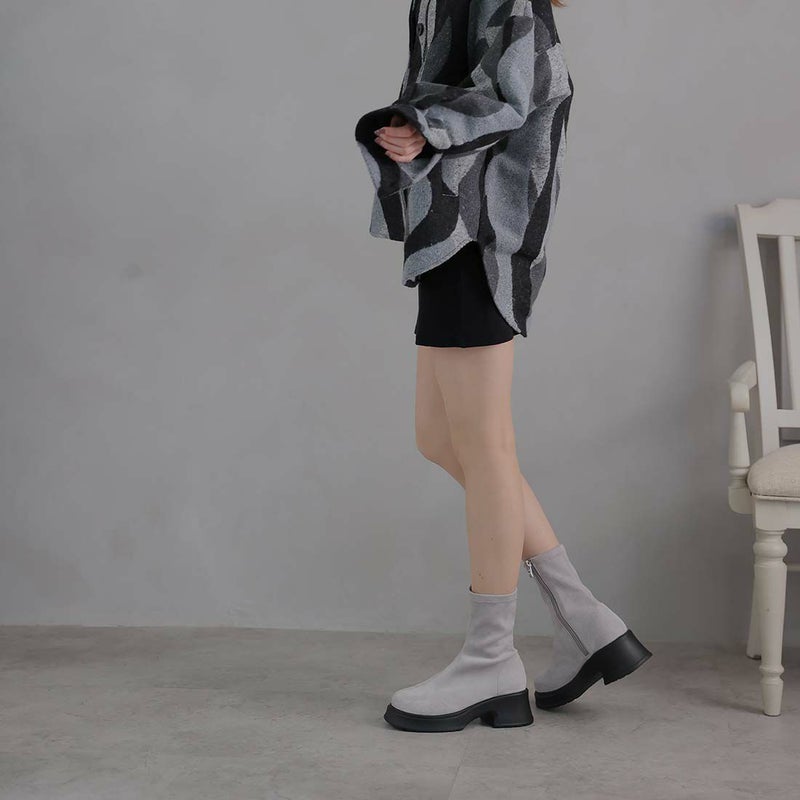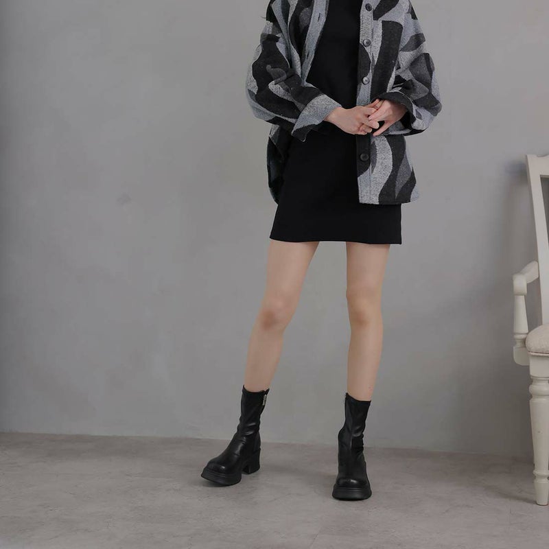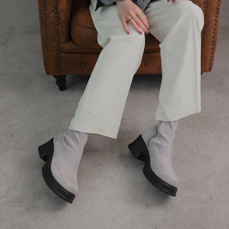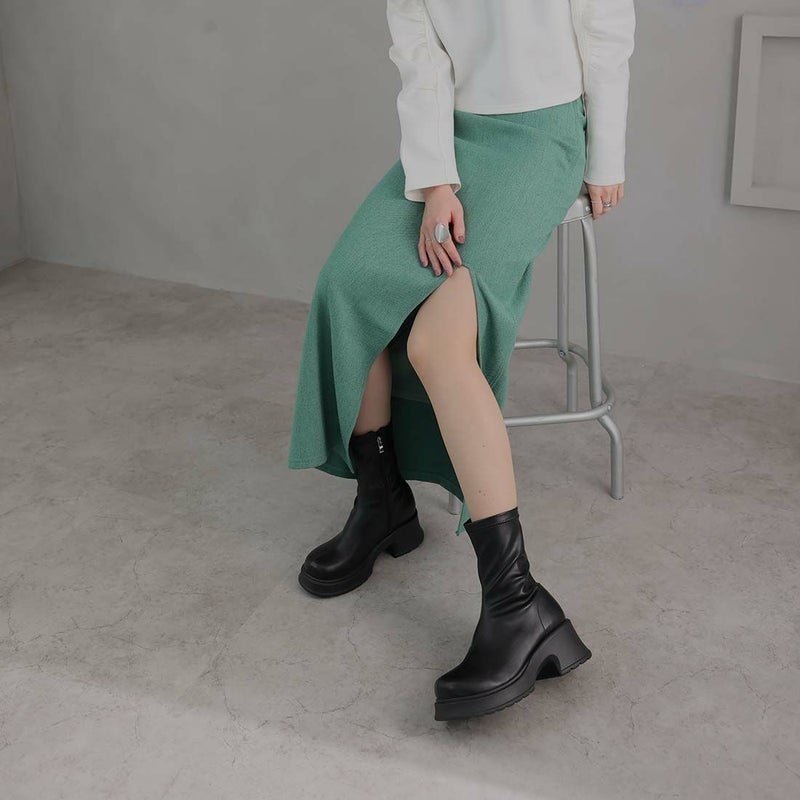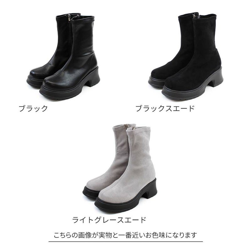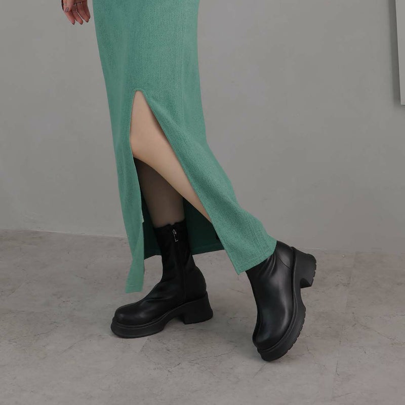・コロンとした丸みのあるトゥで個性が際立つ厚底ストレッチブーツ!