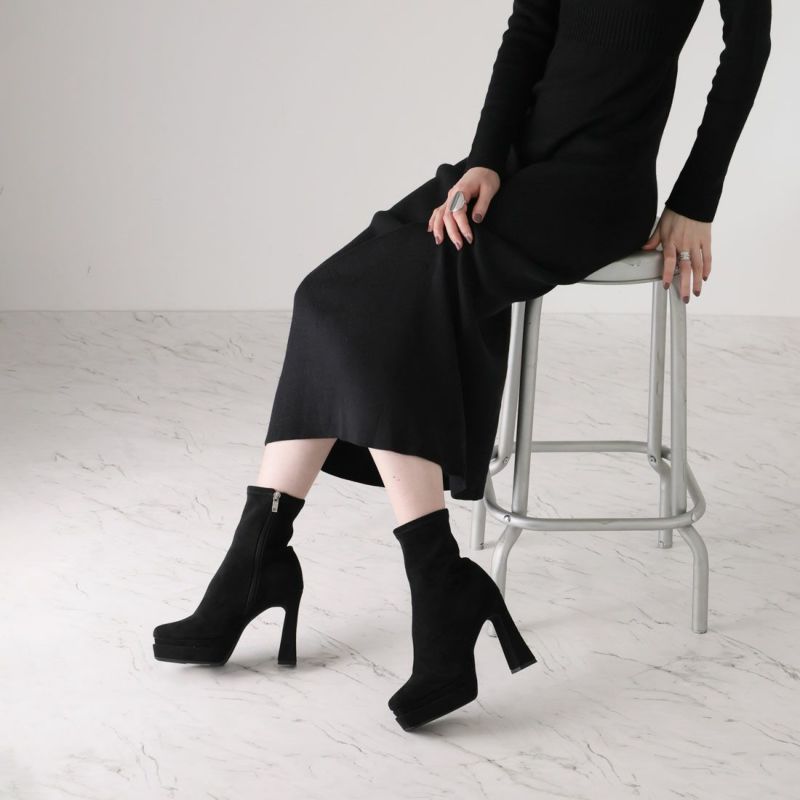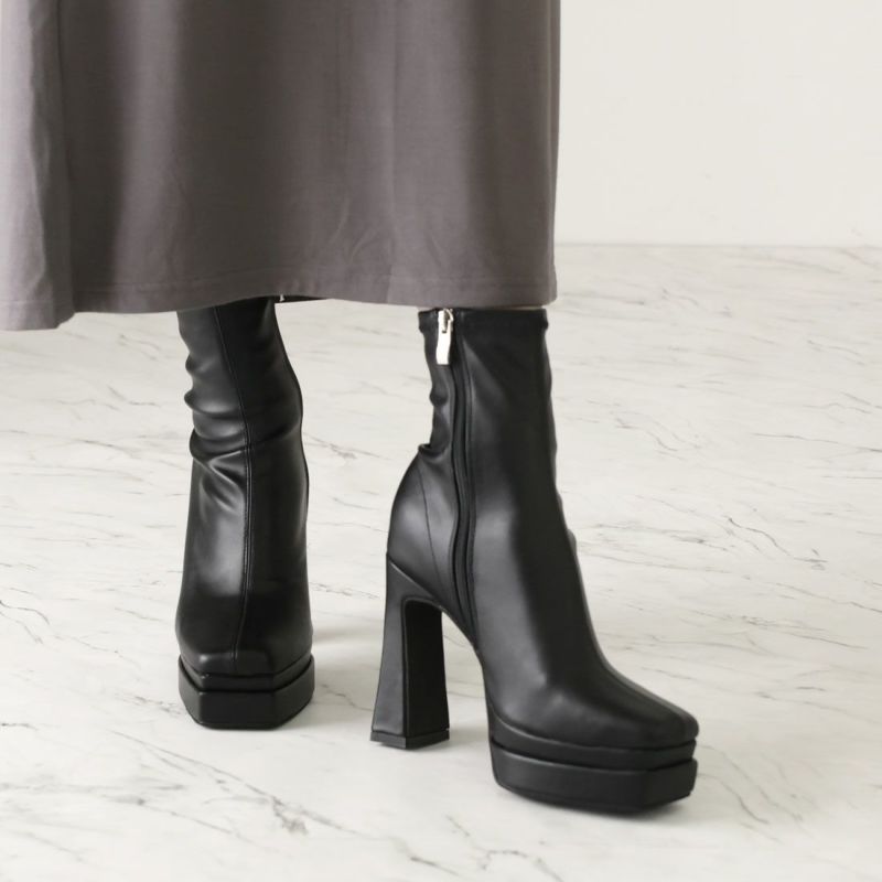 ・厚底プラットフォームデザインで足元も盛れるショートブーツ!
