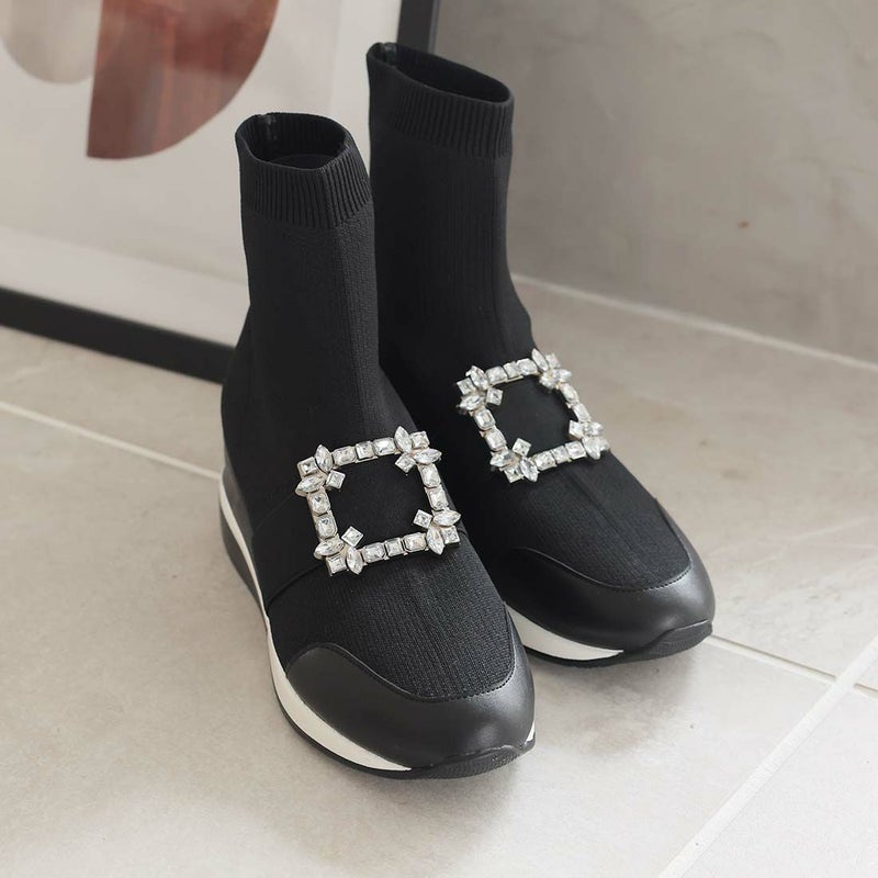 ・乙女心くすぐるキラキラビジューバックルが輝く主役級スニーカーブーツ!