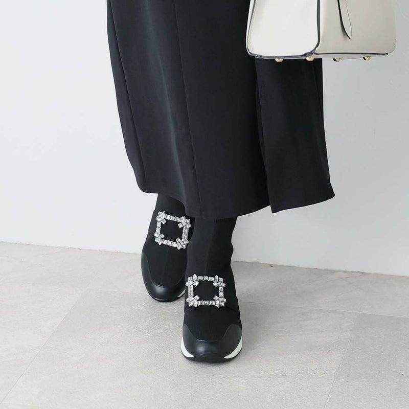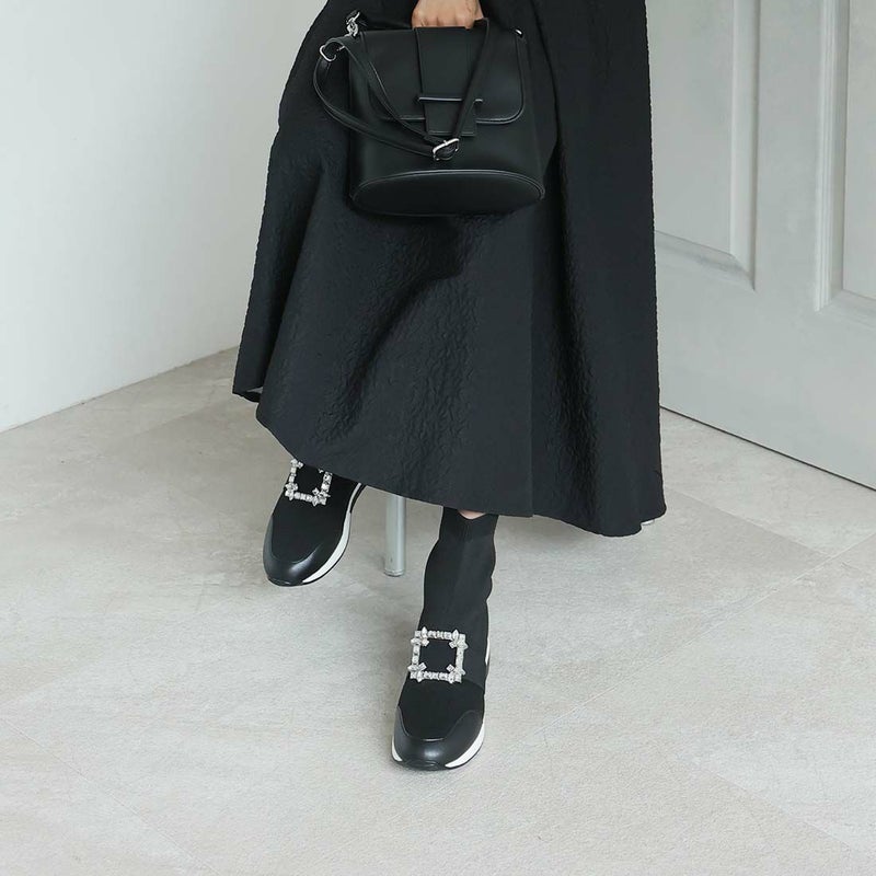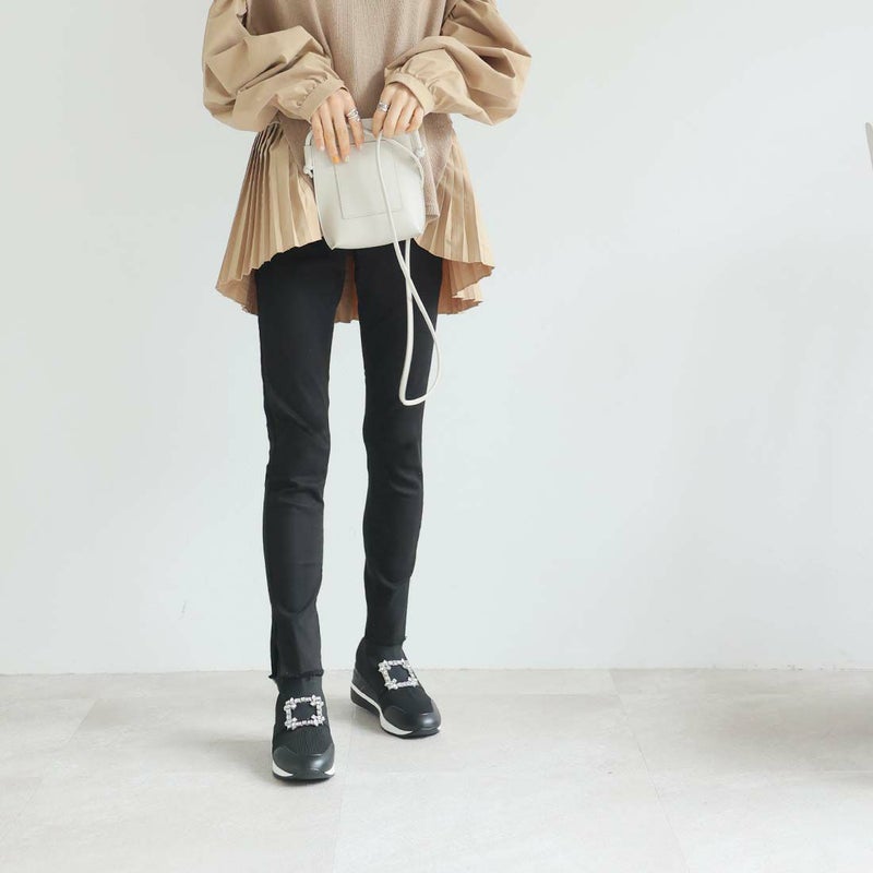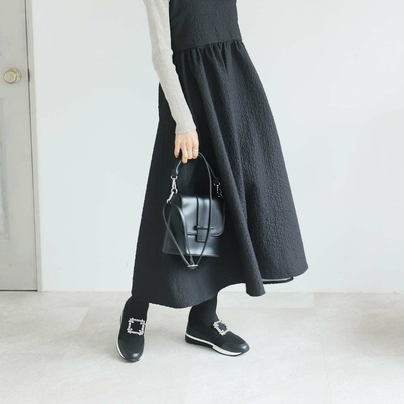 ・高級感のあるビジューバックルは、いつものコーデに合わせるだけでエレガントさをプラス。