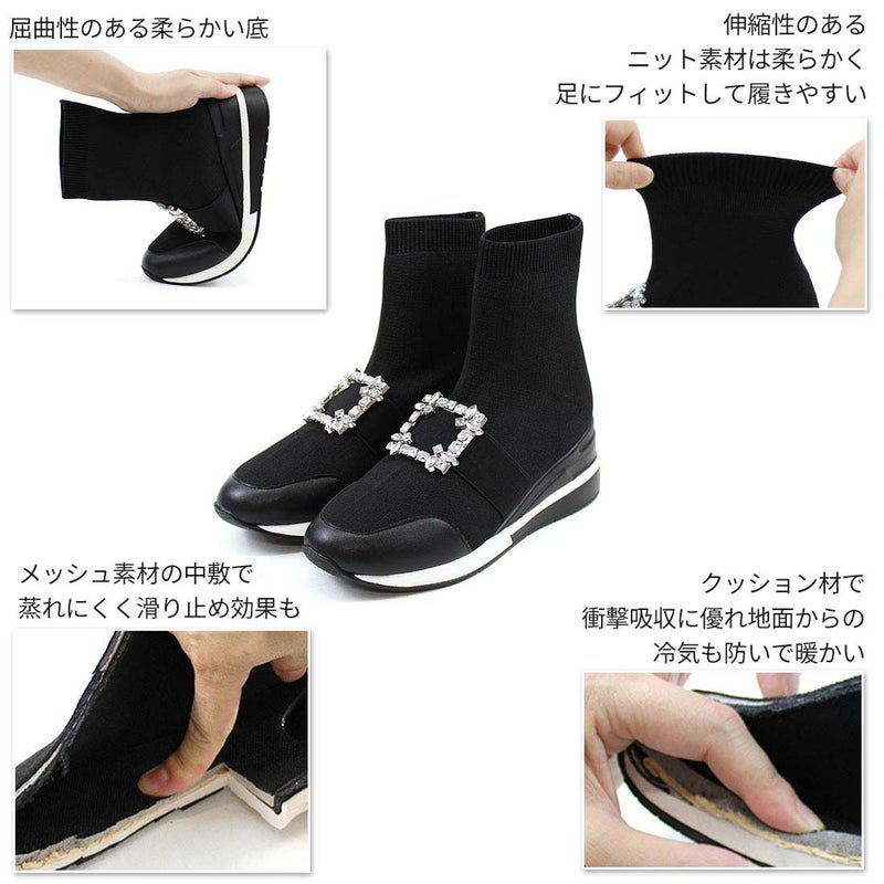 ・伸縮性のあるニット素材は柔らかく足にフィットして履きやすい。