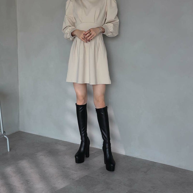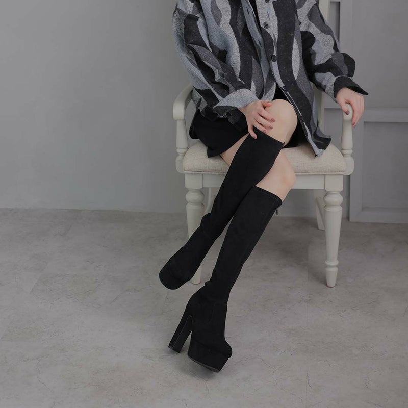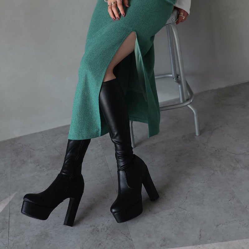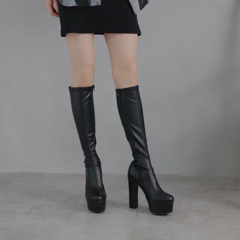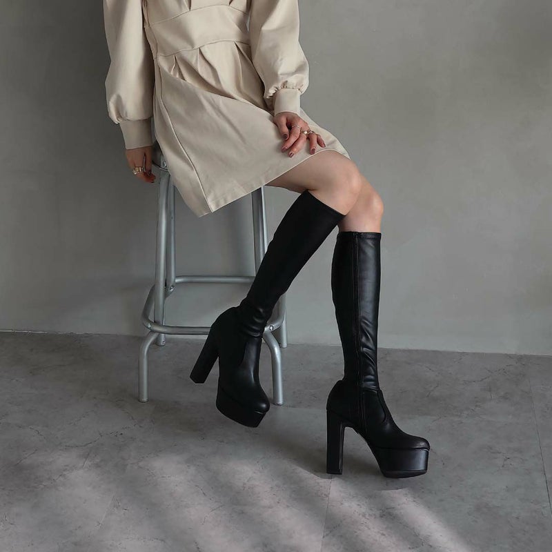 ・厚底プラットフォームデザインで足元も盛れるロングブーツ!