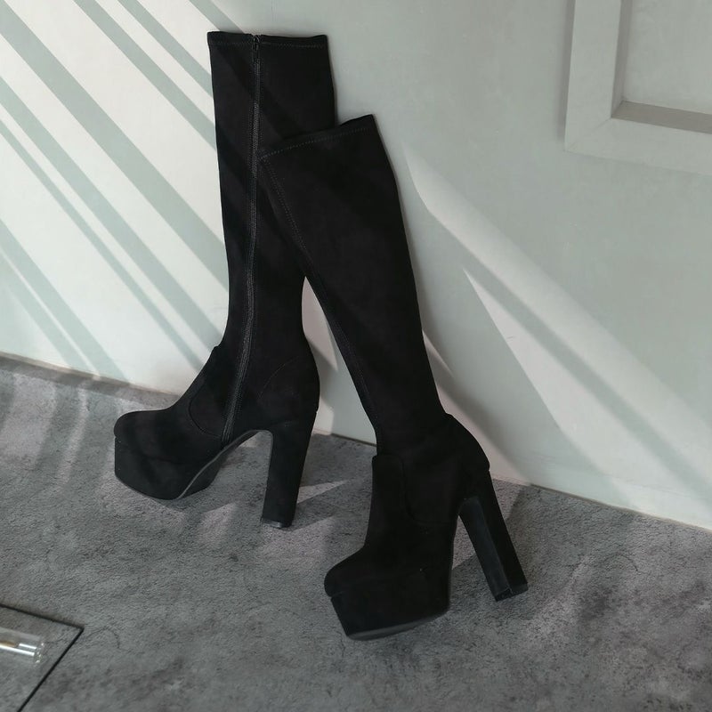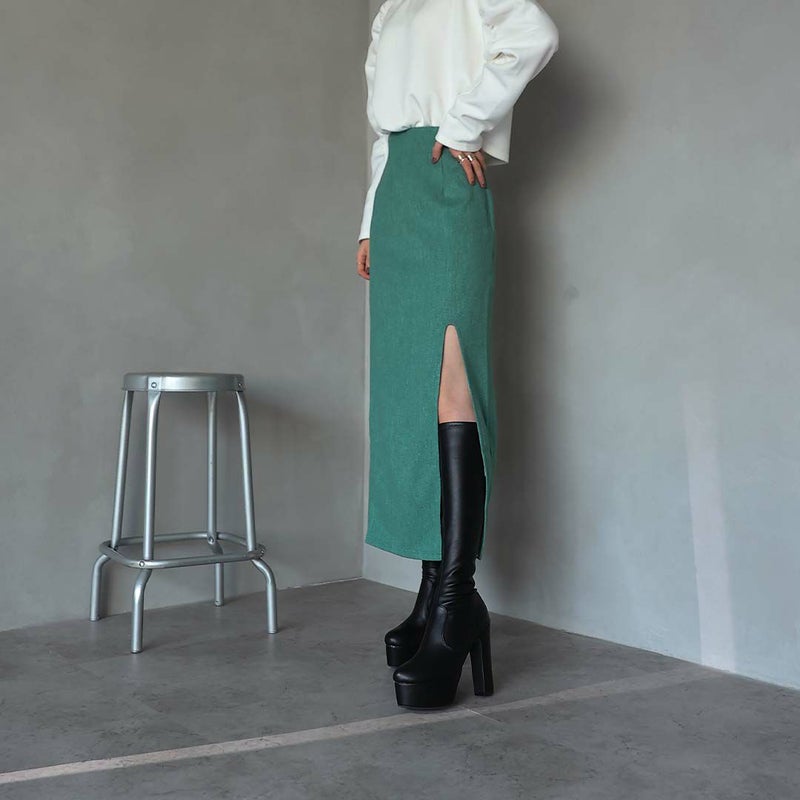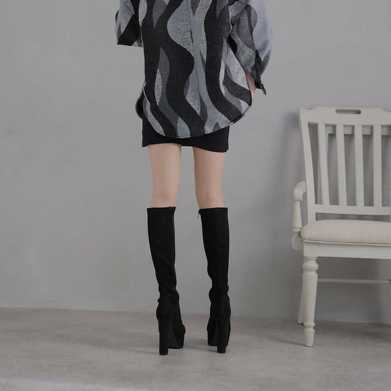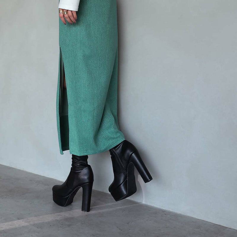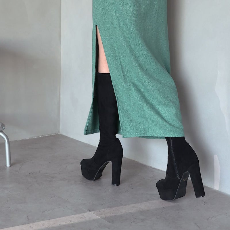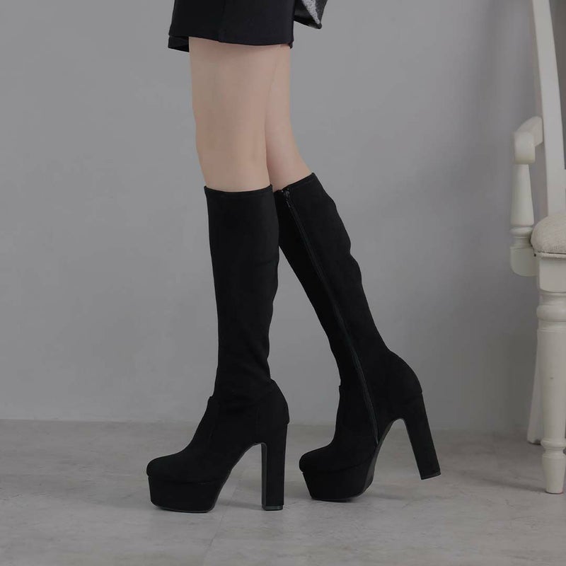 ・厚底プラットフォームデザインで足元も盛れるロングブーツ!