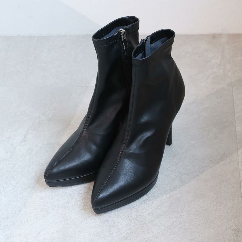 ・ポインテッドトゥ×ピンヒールでスタイルアップが叶うストレッチブーツ!