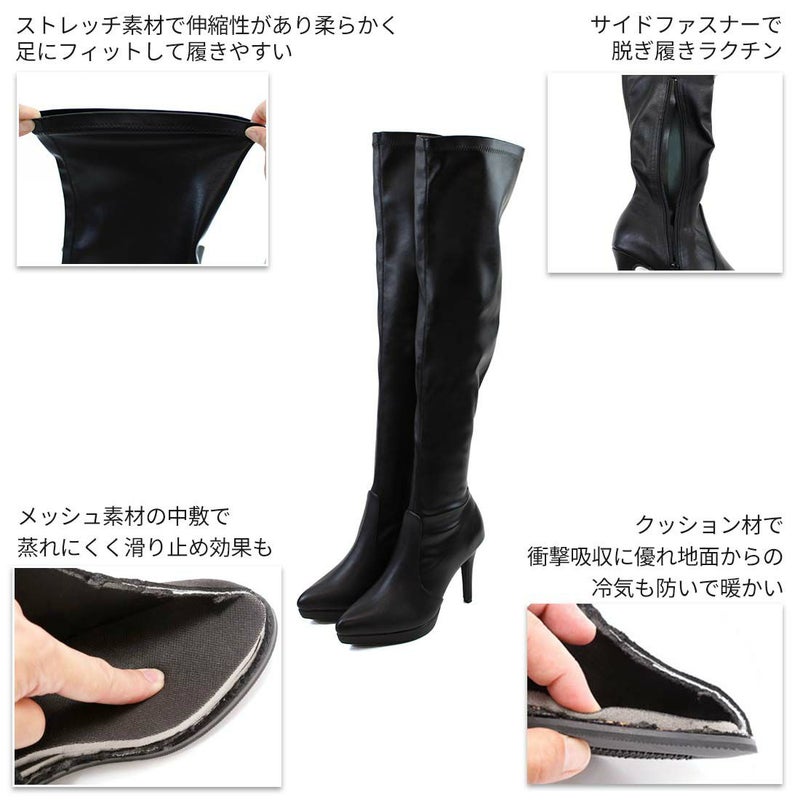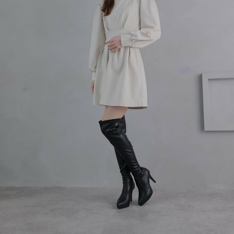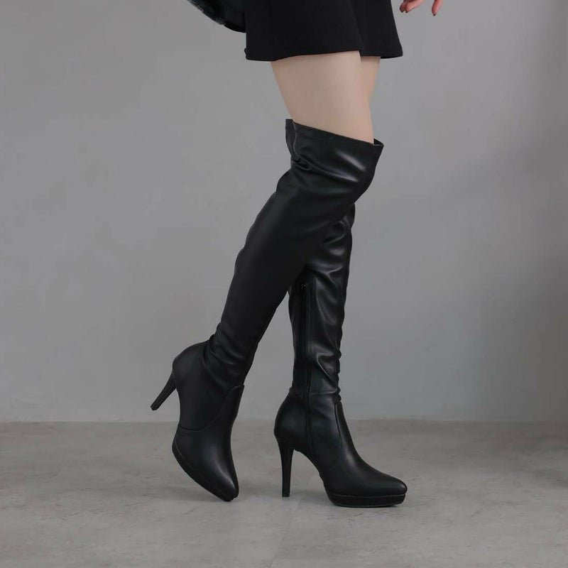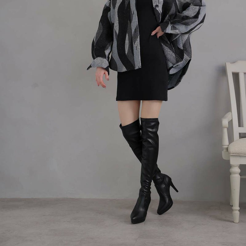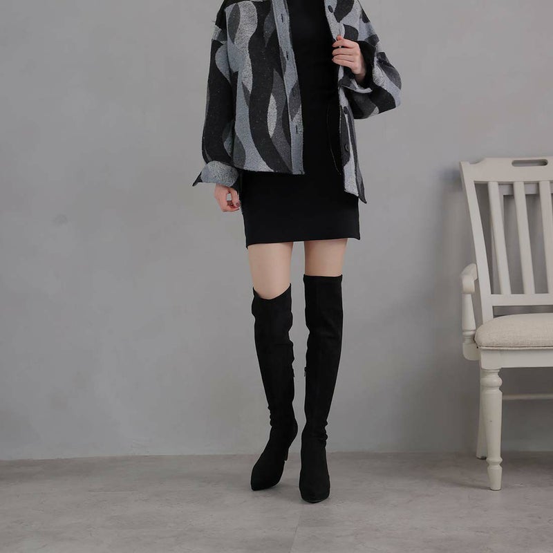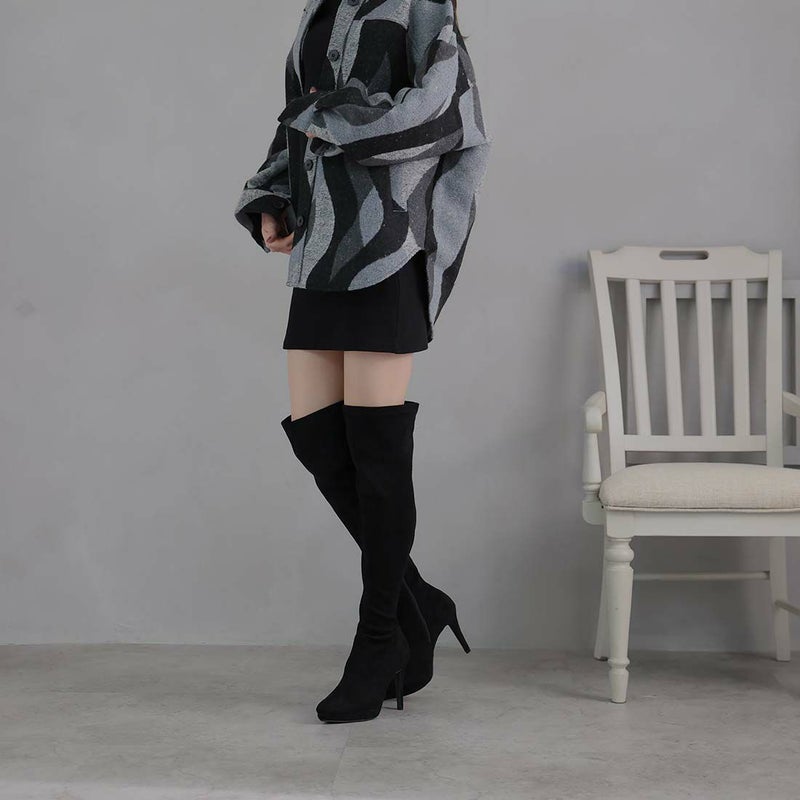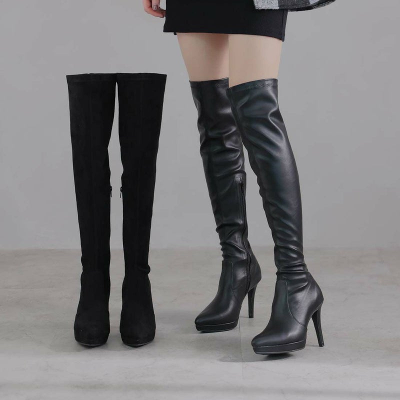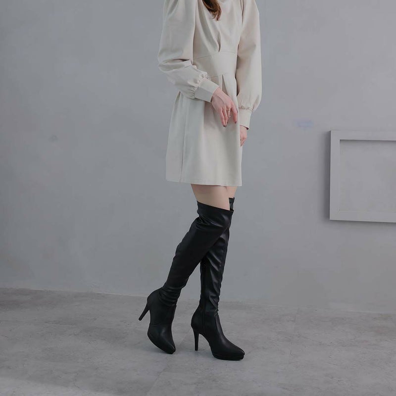 ・ポインテッドトゥ×ピンヒールでスタイルアップが叶うニーハイストレッチブーツ!