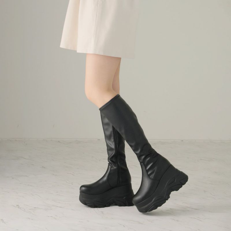 ・定番のストレッチブーツも厚底のスニーカーソールでハンサムライクな主役級アイテムに。