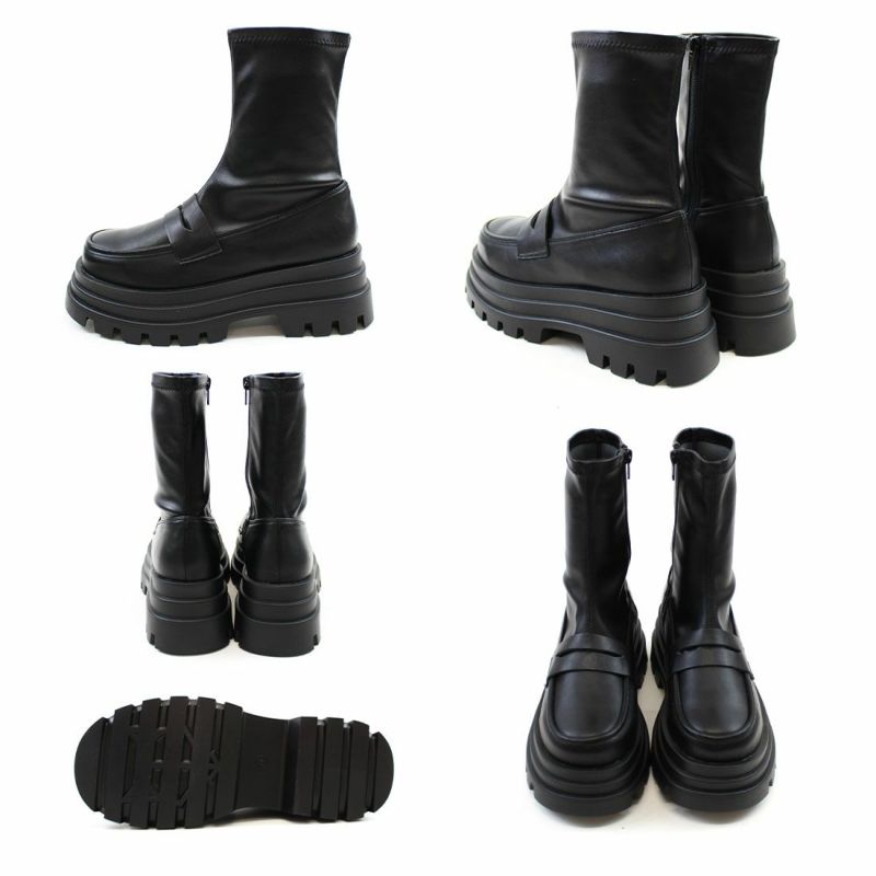 ・コインローファーデザインのゴツめ厚底ストレッチブーツ