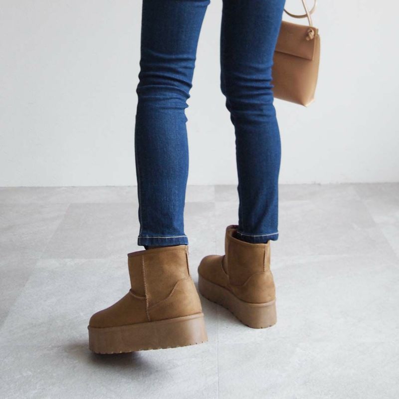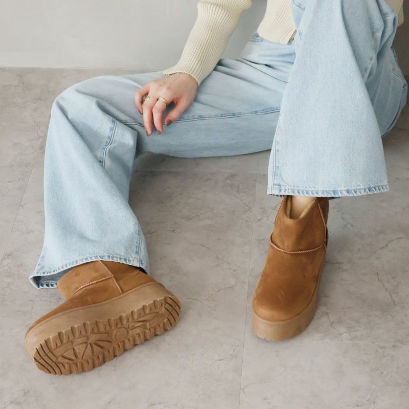 ・冬の定番!あったかムートンブーツも厚底で今っぽいシルエット!