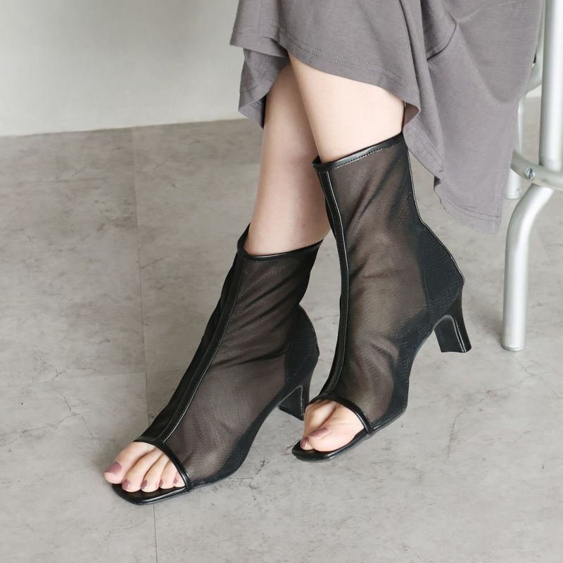 ・チュールやメッシュ素材で透け感のあるシアーブーツ!
