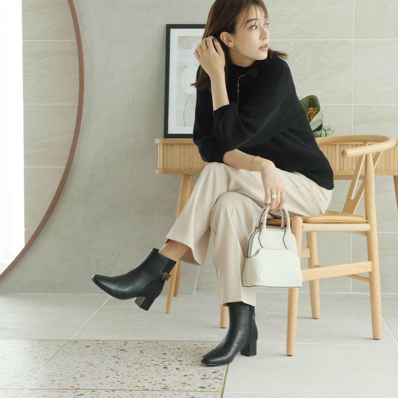 ・丸みのあるスクエアトゥ×ブロックヒールで甘くなりすぎないスッキリとしたシルエット