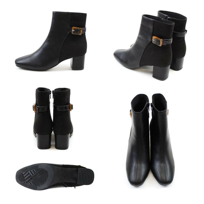 ・定番デザインもべっ甲調バックル付きベルトの異素材コンビでトラッド感漂うショートブーツに