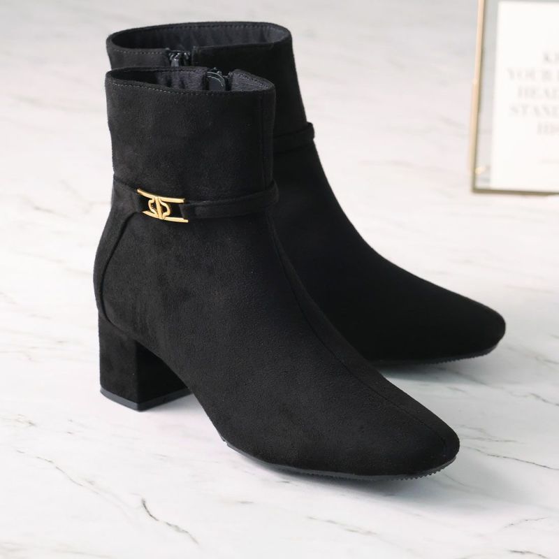 ・定番デザインもゴールドパーツ付きベルトでトラッド感漂うショートブーツに
