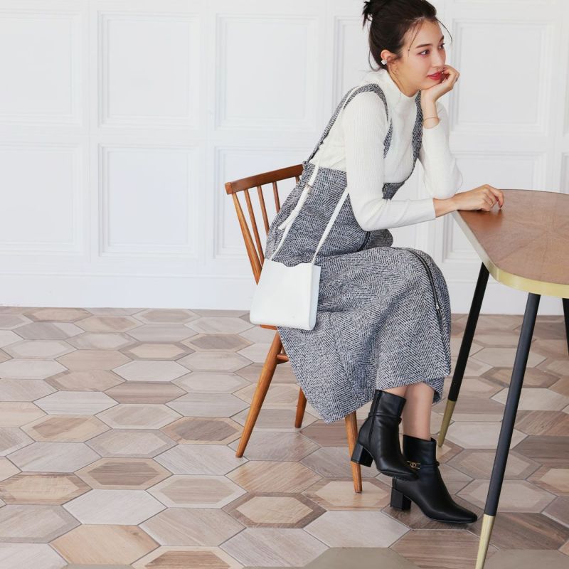 ・丸みのあるスクエアトゥ×ブロックヒールで甘くなりすぎないスッキリとしたシルエット