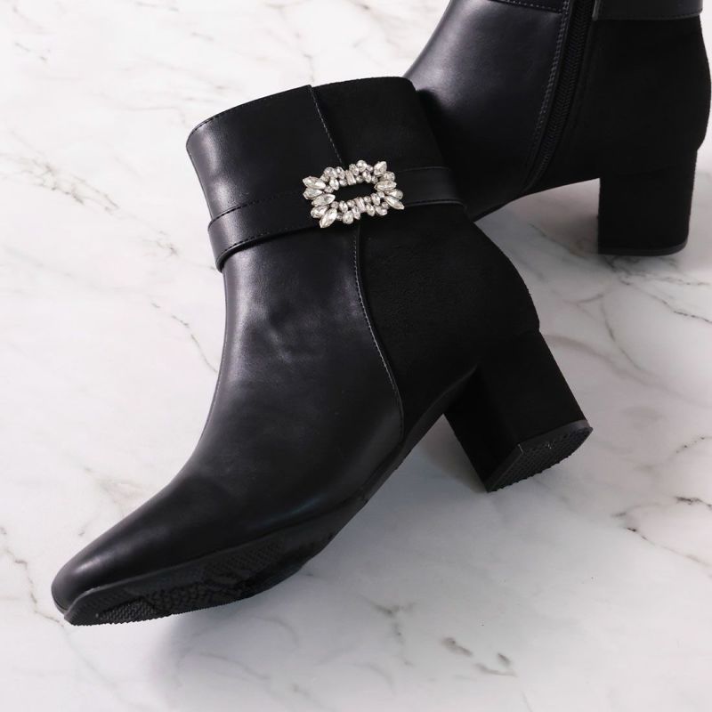 ・キラキラのビジューバックルと異素材コンビで大人っぽさ漂うショートブーツに