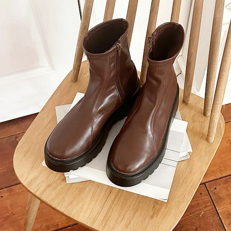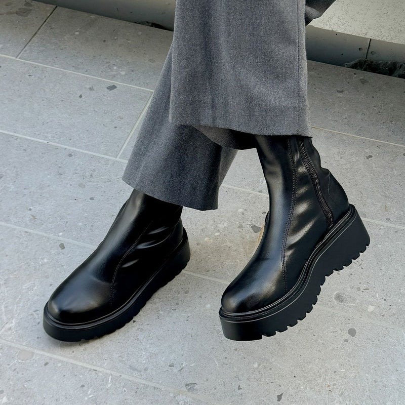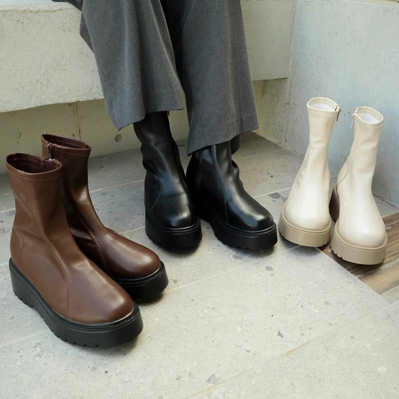 ・縦のラインが際立つダブルステッチがアクセントの今っぽ厚底ブーツ!
