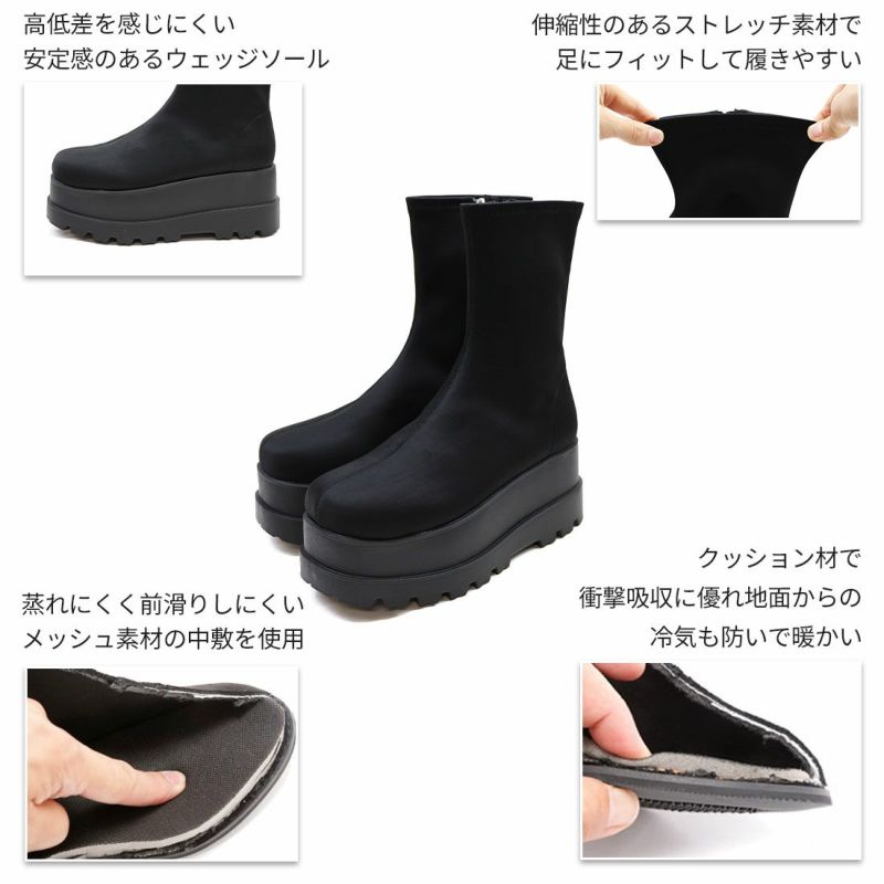 ・脚長に見える厚底ウェッジでスタイルアップが叶うストレッチブーツ!