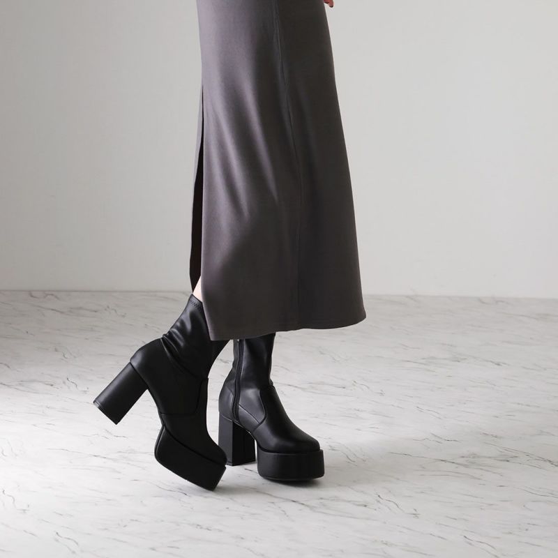 ・厚底プラットフォームデザインで足元も盛れるショートブーツ!