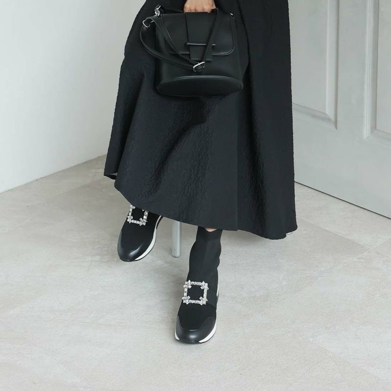 ・高級感のあるビジューバックルは、いつものコーデに合わせるだけでエレガントさをプラス。