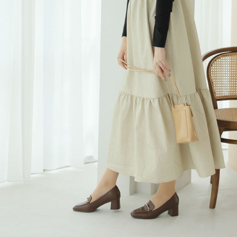 ・スクエアトゥ×ブロックヒールで甘くなりすぎない上品フォルム