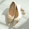・光沢のあるサテンとさりげないビジューレーンがエレガントな雰囲気をプラス