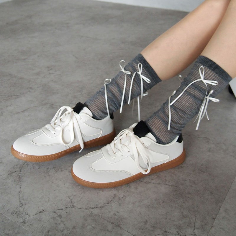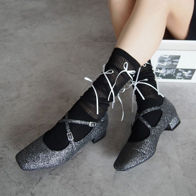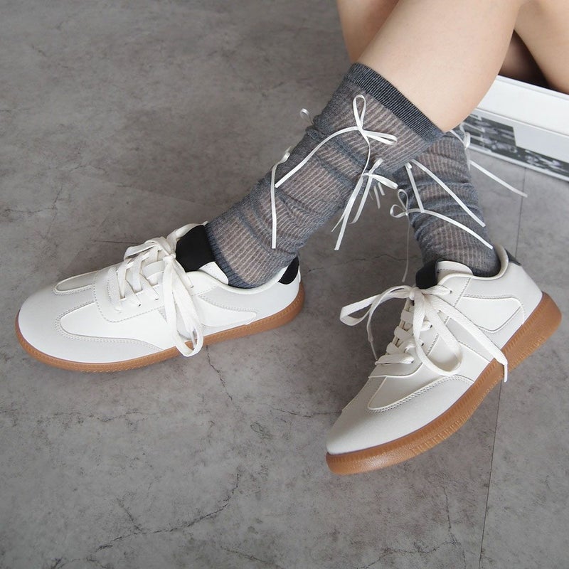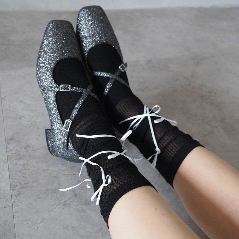 ・ゴツめのローファーやバレエシューズ、厚底スニーカー、トレンドのメタリックカラーやパンプスと合わせてコーデのアクセントに。