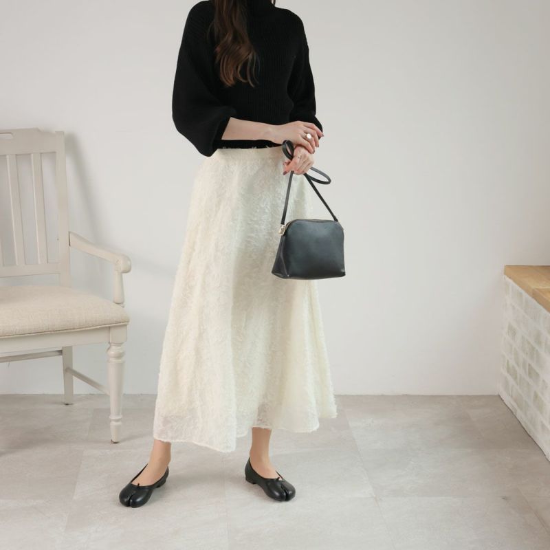 ・スカートやワンピースなどガーリーアイテムとの相性が良く、デニムやカジュアルコーデなど幅広いテイストに合わせやすい。