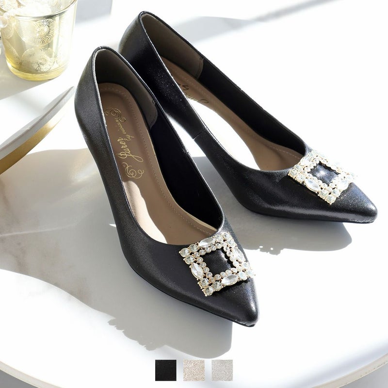 ・ラグジュアリー感漂うビジューバックルとメタリック素材でエレガントな足元を演出!