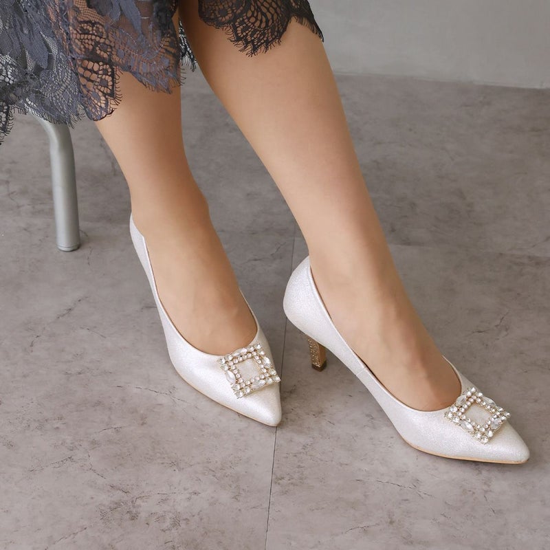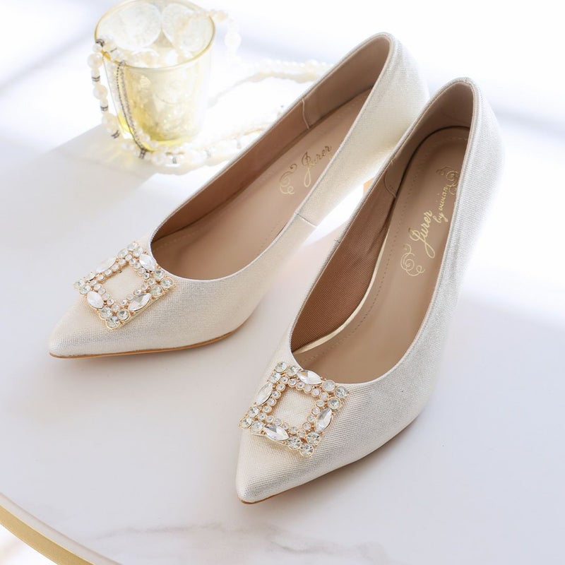 ・グリッターヒールで後ろ姿まで隙のない素敵コーデに。