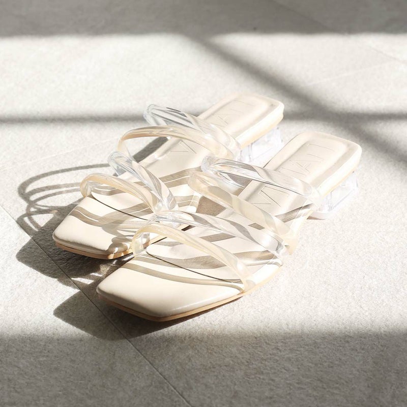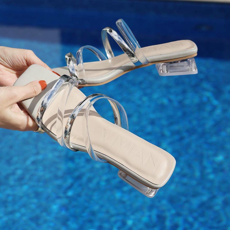 華奢ストラップ×クリアヒールで魅惑のヌーディーサンダル!