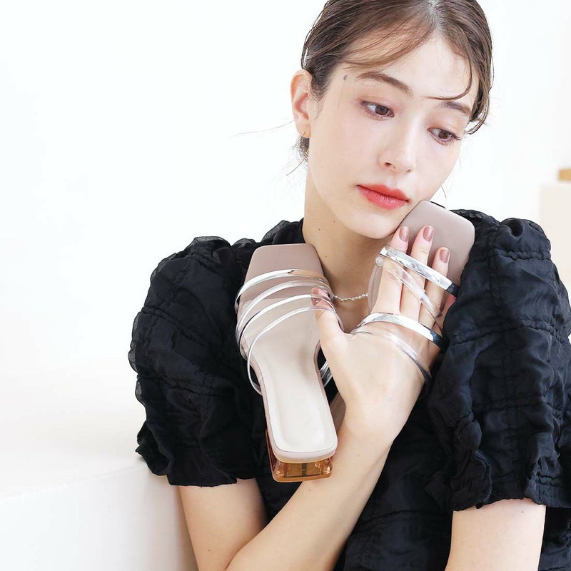 ・華奢ストラップ×クリアヒールで大人な抜け感ヌーディーサンダル!