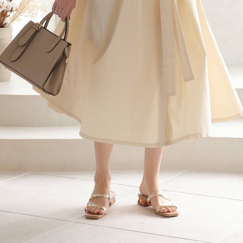 トゥはもちろん、かかともスクエアフォルムで今っぽい!