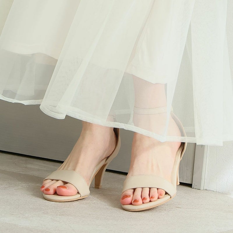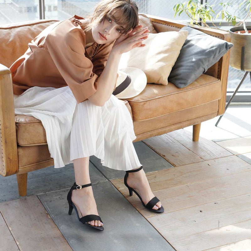 華奢な細ベルトデザインはどんな服にも合わせやすく肌見せ面積が広く足をキレイにみせてくれる嬉しいデザイン。